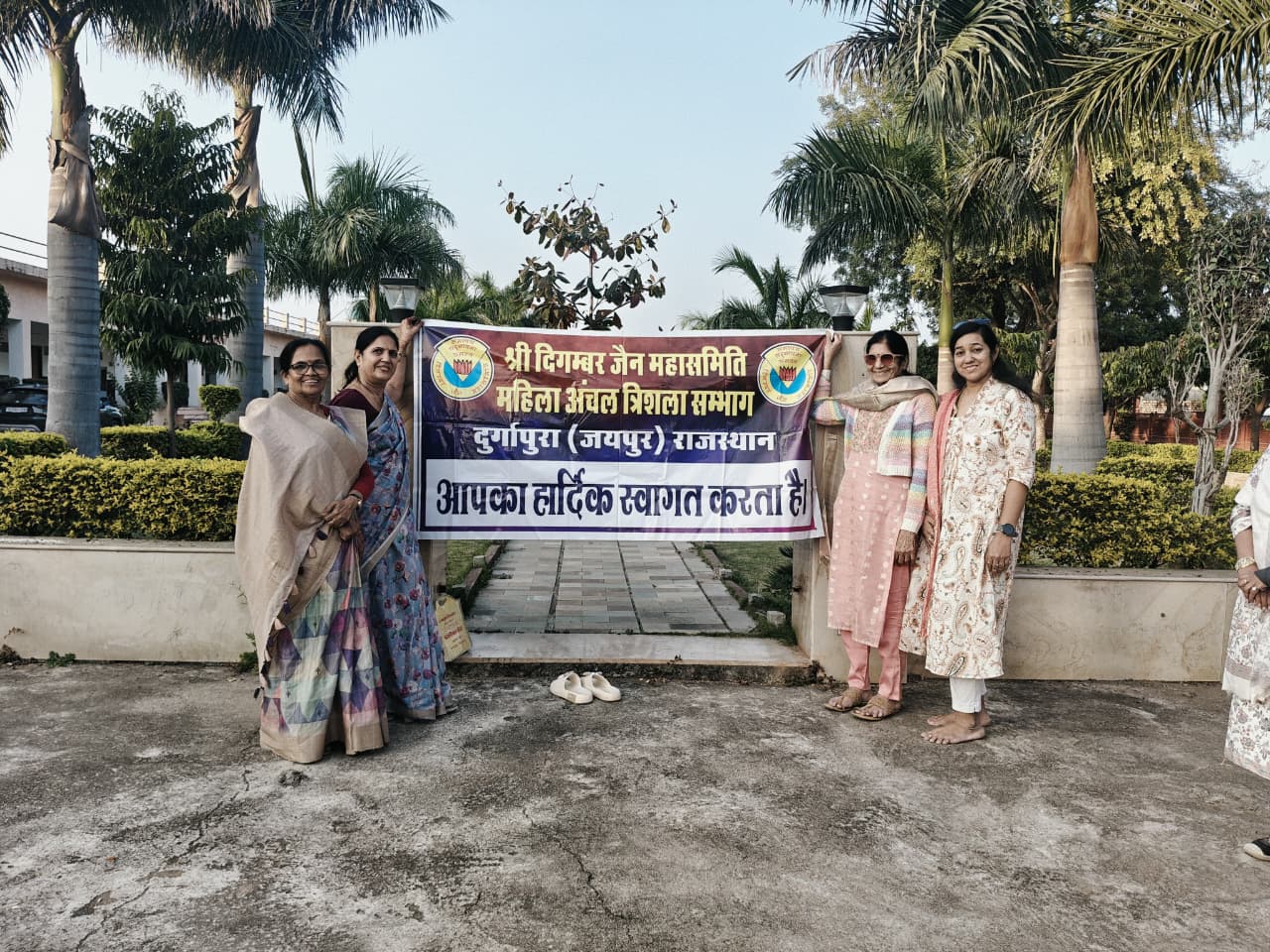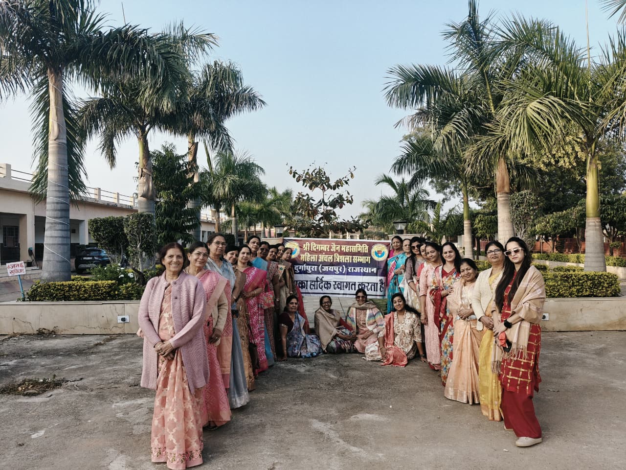 श्री दिगम्बर जैन महासमिति महिला आंचल त्रिशला संभाग जयपुर की अगुवाई में 5 दिसम्बर को चंवलेश्वर पार्श्वनाथ एवं अतिशय क्षेत्र बिजोलिया की धार्मिक यात्रा की गई कार्यक्रम में ग्रुप की अध्यक्षा श्रीमती रेणु पांड्या एवं सचिव छवि जैन ने बताया कार्यक्रम में सभी सदस्याओं के द्वारा सामूहिक रूप से बिजोलिया में भक्तामर का पाठ कर आरती की गई तथा डाक्टर शांति मणि द्वारा धार्मिक गेम खिलाया गया कार्यक्रम में ग्रुप की संस्थापक अध्यक्षा श्रीमती चंदा सेठी की भी गरिमा मयी उपस्थिति रही एवं यात्रा में पूर्ण सहयोग रहा उन्होंने बताया की पुराने नए मेंबर्स ने मिलकर यात्रा का पूर्ण आनंद लिया कार्यक्रम में कोषाध्यक्ष सीमा सेठी ने प्रश्नोत्तरी करके सभी विजेताओं को पारितोषिक दिया, कार्यक्रम में सांस्कृतिक मंत्री सोनल पाटनी और मोना चादवाड ने हाऊजी गेम खिलाकर यात्रा को और मनोरंजन बनाया, कार्यक्रम में शशि तोतुका, अलका सोगानी ,गुणमाला पापड़ीवाल, सीमा बाकलीवाल आदि ने भोजन एवं नाश्ते में सहयोग दिया सभी सदस्यों ने सामूहिक रूप से तय किया की आगे भी इसी तरह से प्रोग्राम बनाकर इस क्रम को जारी रखेंगे।
