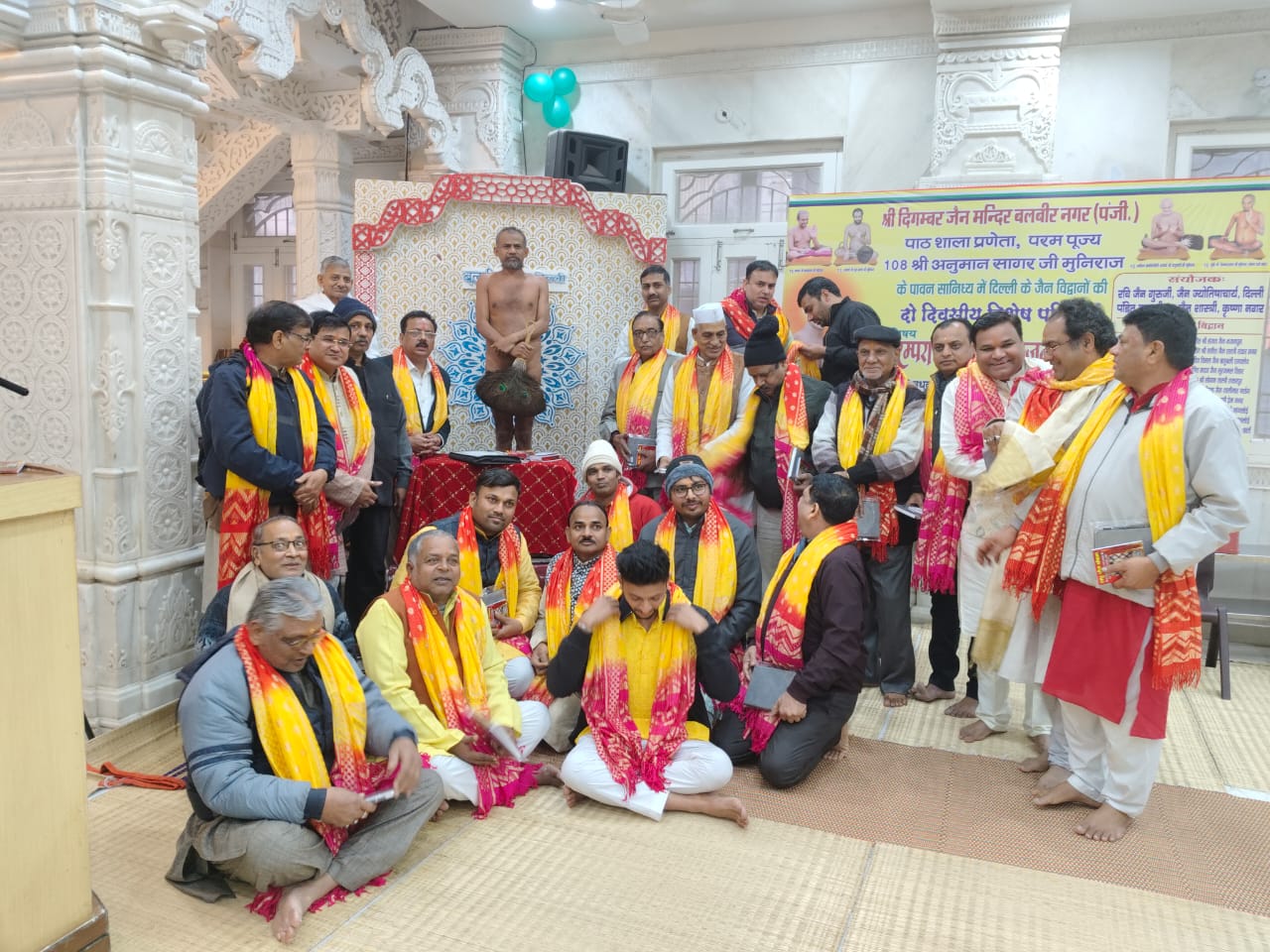 श्री दिगंबर जैन मंदिर बलबीर नगर, शाहदरा दिल्ली में पाठशाला प्रणेता मुनि श्री अनुमान सागर जी के सानिध्य में ” आर्ष परम्परा में पूजन विधान ” विषय पर दो दिवसीय संगोष्ठी का आयोजन किया गया।