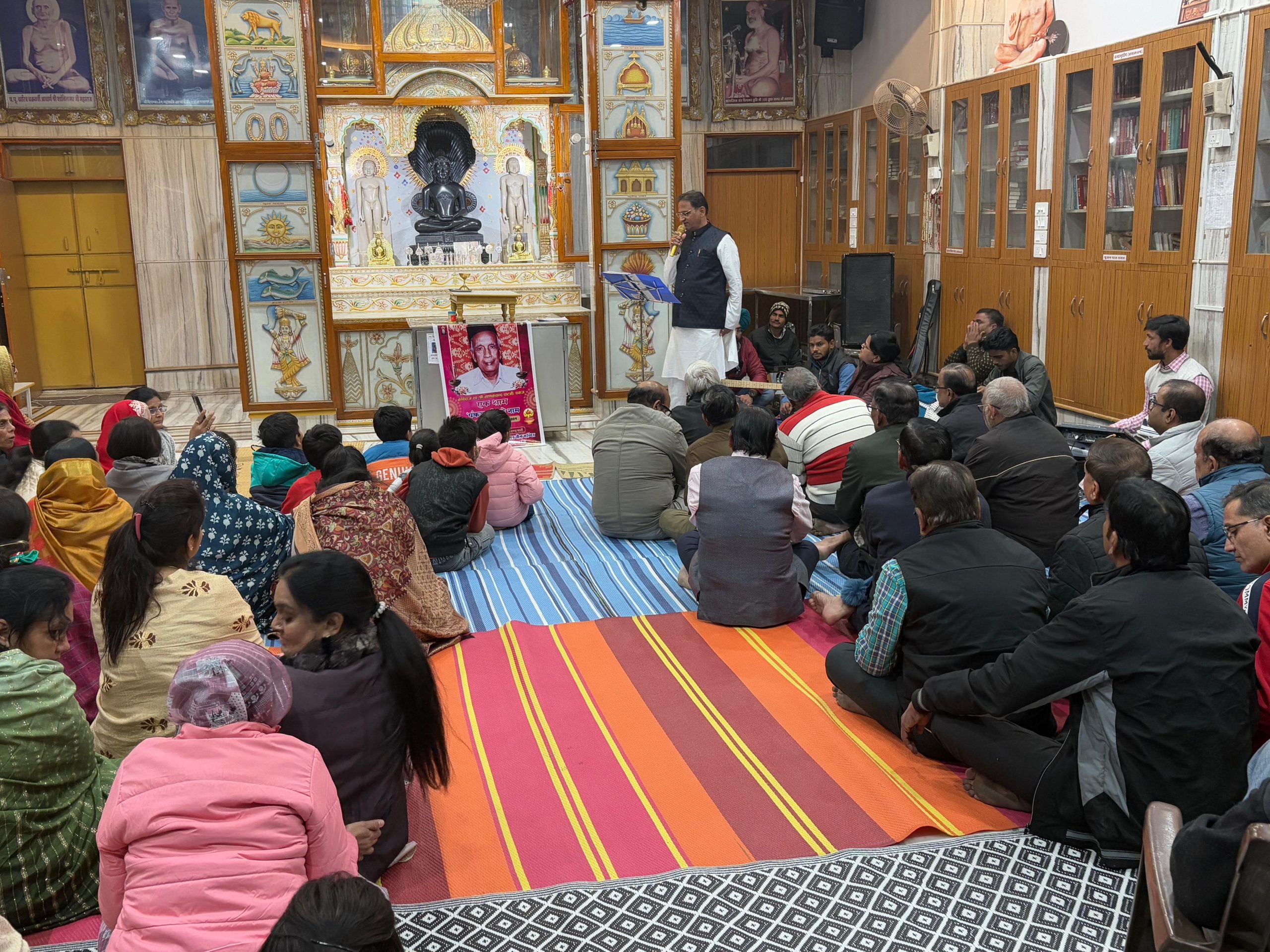 19 दिसम्बर जयपुर, जैन जगत का विश्व प्रसिद्ध भजन “तुमसे लागी लगन ले लो अपनी शरण पारस प्यारा “के रचयिता अजमेर नगर के कविराज माणक चंद पाटनी “पंकज” की 29 वीं पुण्य तिथि पर दिगम्बर जैन मंदिर पार्श्वनाथ कॉलोनी वैशाली नगर अजमेर पर एक शाम पंकज के नाम भजन संध्या का भव्य आयोजन किया गया कार्यक्रम में प्रज्ञा श्रमण मुनि अमित सागर महाराज की प्रेरणा और आशीर्वाद से प्रति वर्ष आयोजित होने वाली भजन संध्या में संगीतकार निर्मल गंगवाल एंड पार्टी ने कार्यक्रम की शुरुआत तुमसे लागी लगन ले लो अपनी शरण से करके वीर तुम्हारे नाम से मिलता है सुख चैन , आज हम जिनराज तुम्हारे द्वारे आये, कभी ना कभी ये जीव मेरा अपनी मंजिल पायेगा, भुलाना ना पार करो न करो , आगया आगया शरण तुम्हारी जैसे अनेक पंकज के आध्यात्मिक भजन प्रस्तुत कर भावविभोर कर दिया कार्यक्रम में अखिल भारतीय वर्षीय दिगम्बर जैन परिषद राजस्थान प्रांत के मिडिया प्रभारी नरेश कासलीवाल ने बताया कि खचाखच भरे प्रांगण में पंकज के पुत्र विनय ,श्रेयांस, हर्ष, सिद्धार्थ सहित बंटी गदिया, वीरेंद्र बाकलीवाल,दिनेश पाटनी, प्रदीप विनायका, नेमीचंद पाटनी, राजेश काला , प्रमोद पाटोदी, अंकुर विनायका, उर्मिला पाटनी, भावना बाकलीवाल, मधु पाटनी अनिता पाटनी , शांता काला सहित समाज के अनेक महिला पुरूषों ने देर रात तक चली भजन संध्या में भाग लेकर” पंकज “को श्रद्धा सुमन अर्पित कर श्रद्धांजलि अर्पित की ।