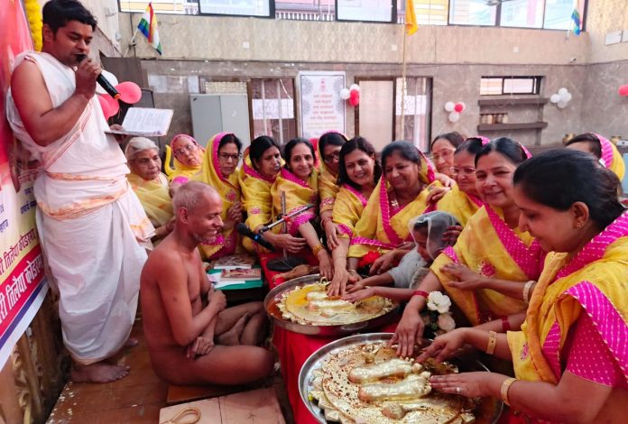ओर हम सब को इंडिया नही भारत कहना है साथ ही हिन्दी भाषा मे बहुत जोर देते थे।आज गुरु नही है मगर गुरु चरण ही हम सब के लिए पूज्य है इसलिये गुरु चरण की प्रतिष्ठा कर गुरु चरण विराजमान किया जा रहा है।इसके बाद गुरु पूजा सुबोध-आशा जैन गंगवाल के संगीतमय पूजन आचार्य छत्तीसी बिधान के द्वारा।किया।गया जिसमें 36 अर्घ्य के साथ श्री फल मंडप पर सभी भक्तों द्वारा चढ़ाया गया।ओर साथ ही निर्वाण लड्डू भी भक्तों के द्वारा प्रभु चरणों मे समर्पित किया गया। इन सभी कार्यक्रम में विशेष रूप से शामिल समाज के उप मंत्री नरेंद्र जैन झांझरी,जय कुमार जैन गंगवाल,ललित जैन सेठी,महिला समाज की अध्यश्रा नीलम जैन सेठी,मंत्राणी आशा जैन गंगवाल हुवे