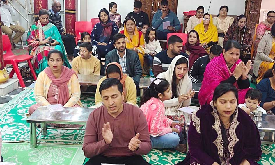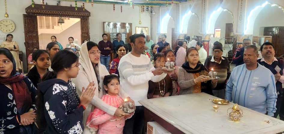 पाठ करते व आरती करते श्रद्धालु………..(डा. आर. के. जैन)