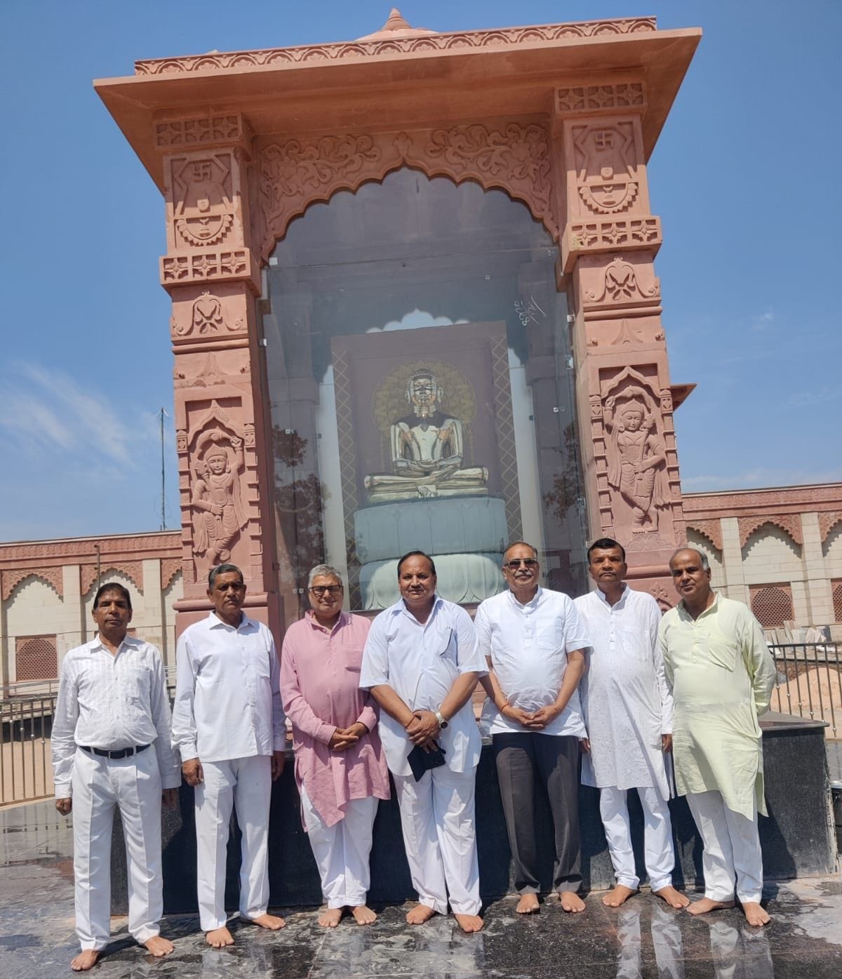 श्री महावीर जी रेलवे स्टेशन पर अमृत भारत स्टेशन स्कीम के तहत गोल सर्कल के अंदर बंसी पहाड़पुर के लाल पत्थरों से बनी कलात्मक छतरी के अंदर कमलासन पर विराजमान श्रंमण संस्कृति के महामहिम आचार्य श्री विशुद्ध सागर जी महामुनिराज के आशीर्वाद से भगवान महावीर स्वामी की प्रतिमा यात्रियों के लिए आकर्षण का केंद्र बनी हुई है। धर्म समाज प्रचारक राजेश जैन दद्दू ने बताया कि आज समाज बंधुओ ने सर्किल एवं छत्री के अंदर अपने कर कमलों से कार सेवा कर साफ सफाई का कार्य किया। दद्दू ने बताया कि छतरी के अंदर कमलासन टफन ग्लास को साफ किया गया। साफ सफाई के बाद भगवान महावीर स्वामी की ब्रांज मेटल की प्रतिमा का अति मनोहारी रूप निखर आया है। यह सर्कल समस्त समाज जन आने जाने वाले यात्रियों के लिए आकर्षण का केंद्र बन गया है।आज जैन समाज के प्रसिद्ध वास्तुविद राजकुमार कोठारी इंजीनियरअनिल जैन ललितपुर नरेंद्र जैन नृपत्या अध्यक्ष दिगंबर जैन सोशल ग्रुप ,सुमेर जैन सोनी संस्थापक अध्यक्ष एवं सुभाष सौगानी कोषाध्यक्ष योगेश टोडरका, जयपुर मोहनलाल जैन पाटनी गोनेर आदि ने सर्किल एवं छतरी की साफ सफाई में सहयोग किया एवं प्रतिमा की साफ सफाई की।