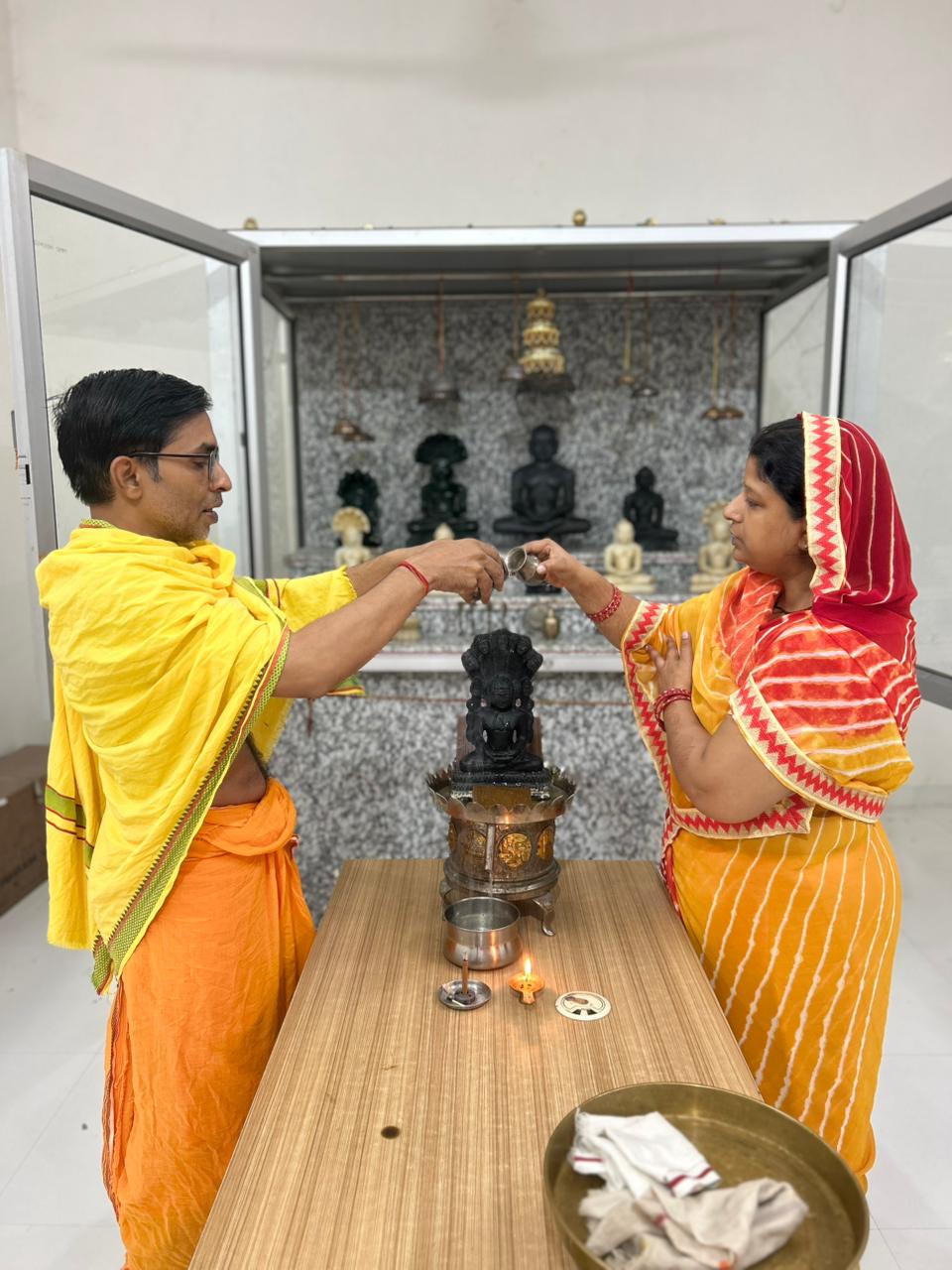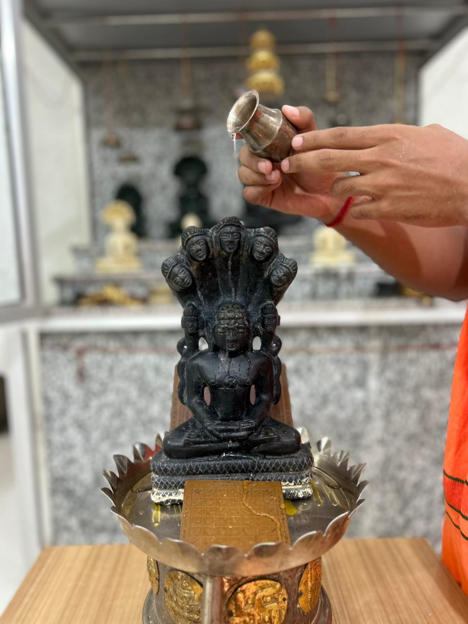 आज का पावन शुक्रवार का दिन साक्षी बना एक दिव्य, अलौकिक और भक्ति से भरे दृश्य का — भूगर्भ से अवतरित श्री चिंतामणि पार्श्वनाथ भगवान का अभिषेक एवं शांतिधारा बड़े ही श्रद्धा भाव से सम्पन्न हुई। जैसे-जैसे पवित्र जल की धाराएँ भगवान के दिव्य शरीर पर प्रवाहित हुईं, सम्पूर्ण वातावरण में मंत्रों की गूंज और भक्ति का स्पंदन भर उठा। ऐसा प्रतीत हुआ मानो स्वर्ग स्वयं इस तीर्थ में उतर आया हो।