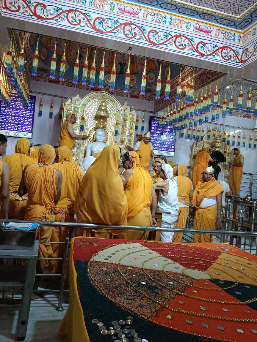 तुरंत पश्चात मंदिर जी के तीनों शिखर पर विराजमान एवं मंदिर जी जिन बंब में विराजमान सभी प्रतिमाओं के अभिषेक का आनंद लिया.