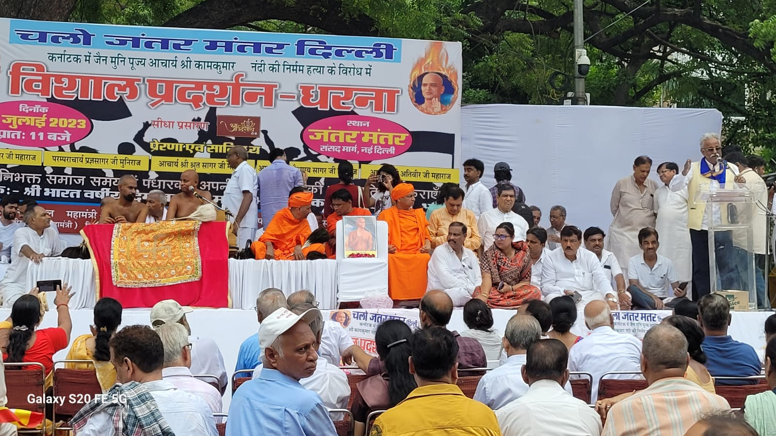 श्री भारतवर्षीय दिगम्बर जैन महासभा के तत्वावधान में 17 जुलाई 2023 आचार्य श्री कामकुमार नंदी जी महाराज की नृंशश हत्या के विरोध में स्थानीय जन्तर-मन्तर, संसद मार्ग, नई दिल्ली-1. पर शांतिपूर्ण विरोध प्रदर्शन व धरना दिया गया। आक्रोशित एवं स्तब्ध जैन समाज के लगभग 1500 प्रतिष्ठित लोगों ने विरोध प्रदर्शन में भाग लिया। ज्ञातव्य हो कि आचार्य श्री कामकुमार नंदी जी महाराज की दिनांक 5 जुलाई को अपहरण कर चिक्कोडी,बेलगावी(कर्नाटक)में हत्या कर दी गई थी।