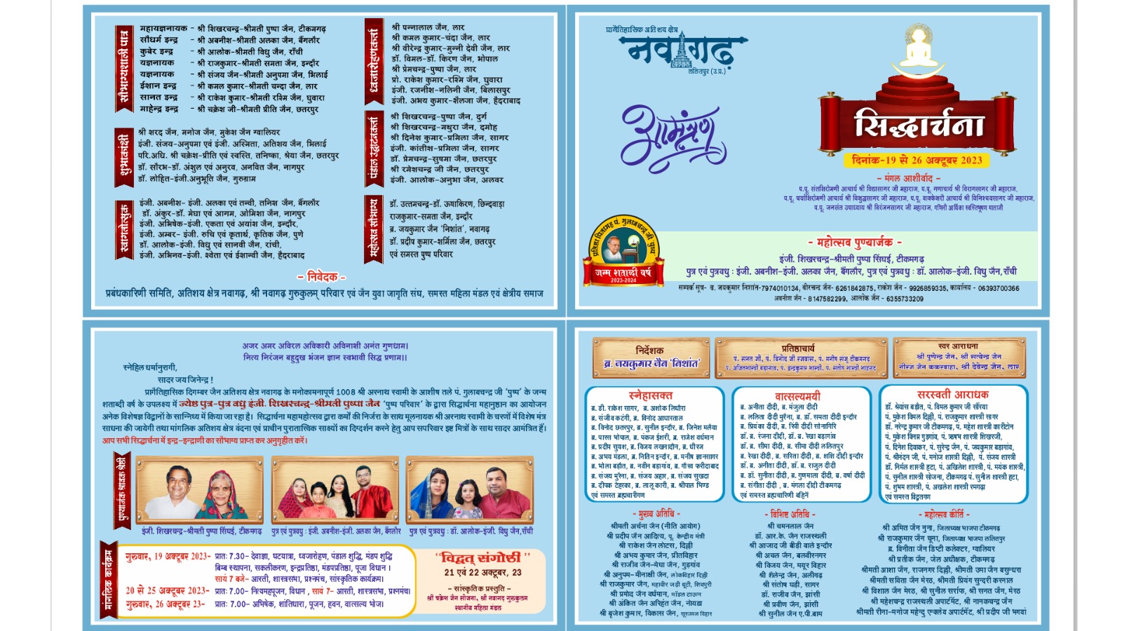 विधान पुण्यार्जक परिवार, प्रागैतिहासिक तीर्थक्षेत्र कमेटी नवागढ़ एवं नवागढ़ गुरुकुलम के पदाधिकारियों ने अतिथियों का स्वागत किया। उक्त जानकारी प्रचारमंत्री डॉ सुनील संचय ने दी। इस मौके पर सैकड़ों की संख्या में श्रद्धालु मौजूद रहे।