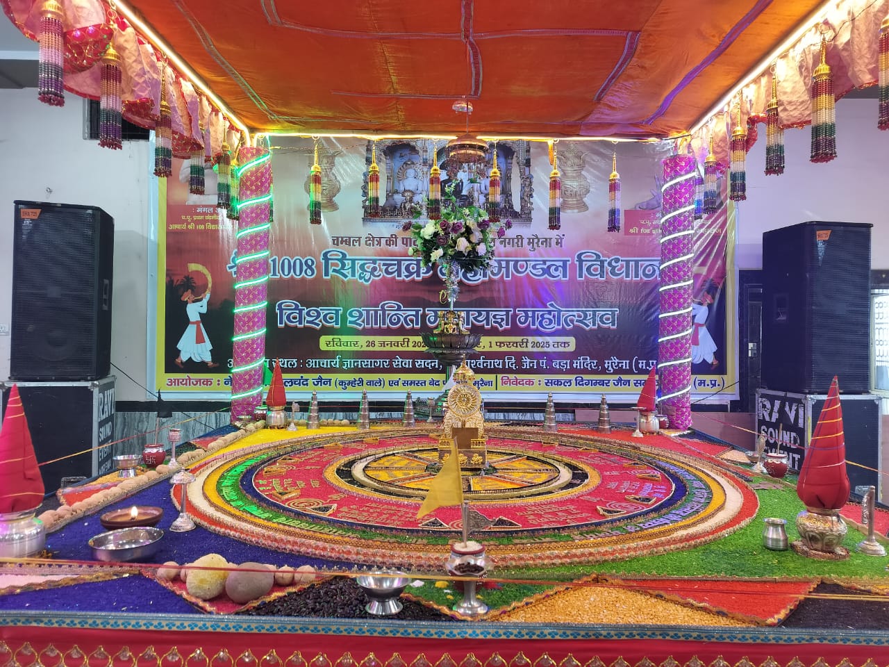 विधान के पूजन में बैठने वाले सभी बंधु, माता बहिनें एक विशेष परिधान के साथ साथ हार एवं मुकुट आदि से सुशोभित थी । सभी लोग सिद्धों की आराधना करते हुए भक्ति के साथ नृत्य कर रहे थे । विधान के अर्घ समर्पण हेतु एक विशाल मंडप बनाया गया है । मंडप के मध्य पाण्डुक शिला पर चतुर्मुखी जिन प्रतिमाएं विराजमान की गईं हैं । स्वर संगम सौरभ जैन एण्ड पार्टी द्वारा प्रतिदिन रात्रि को महाआरती एवं सांस्कृतिक कार्यक्रम प्रस्तुत किए जाते हैं।