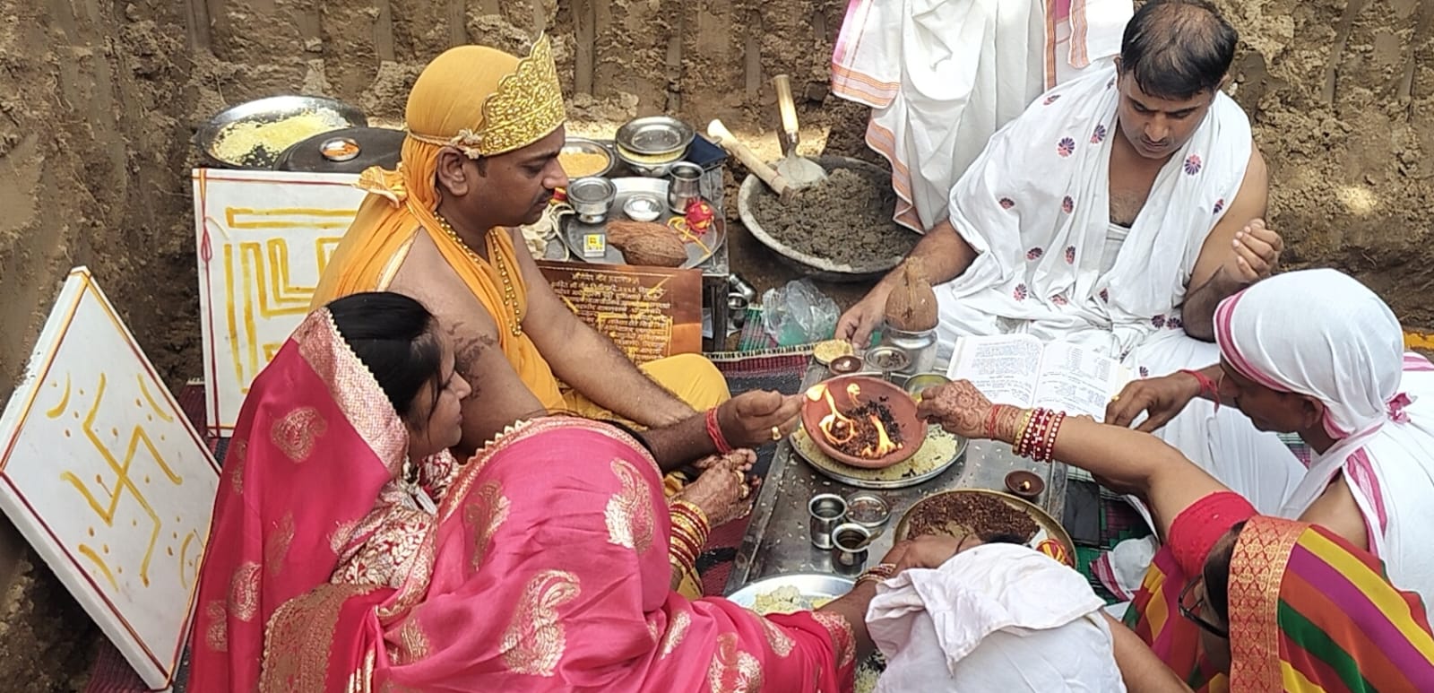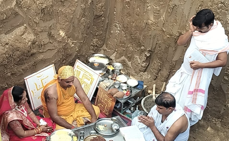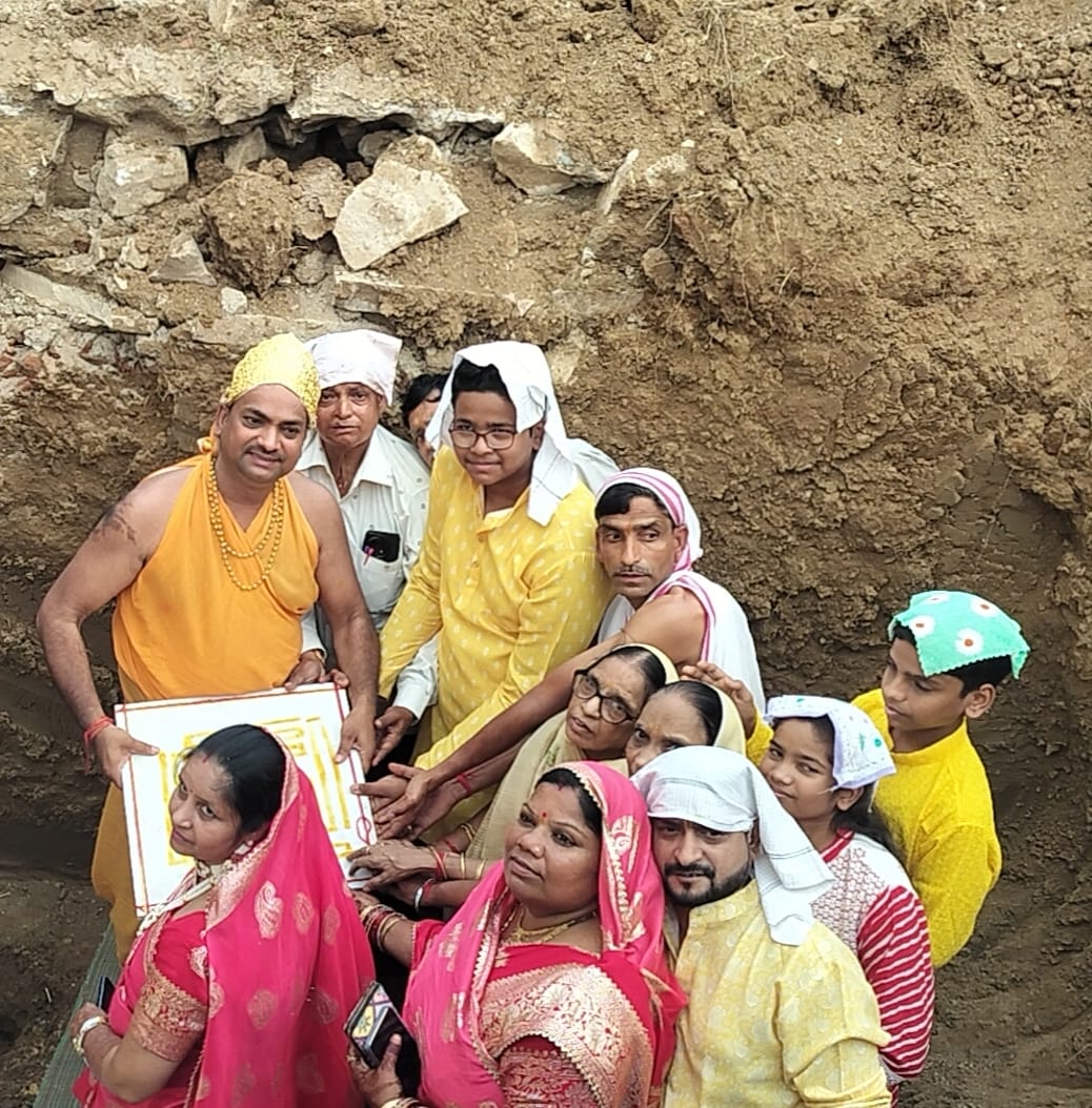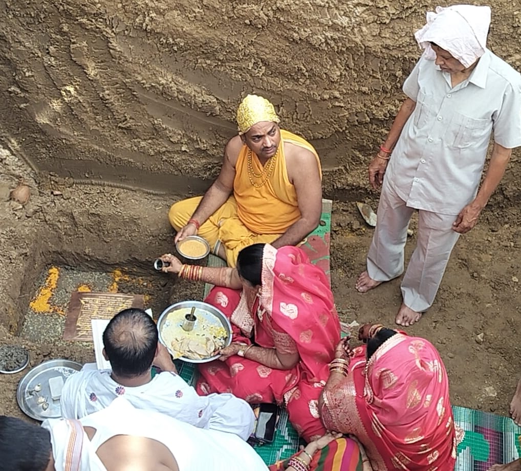 प्रतिष्ठाचार्य द्वारा मंत्रोचारण के मध्य टीकमचंद जैन, धन्नालाल जैन, राजीव जैन, श्रीमती मुन्नीदेवी जैन, चौधरी मोहित जैन चीकू – मनीषा जैन, मनोज विमलेश जैन, शुभम जैन ने नवीन जिनालय की आधार शिला रखी । आधारशिला के स्थापित करते ही पूरा पांडाल श्री जिनेंद्र प्रभु के जय जयकारों से गूंज उठा । उपस्थित सभी बंधुओं ने चौधरी परिवार की भूरि भूरि प्रशंसा करते हुए उनके पुण्य की अनुमोदना की ।