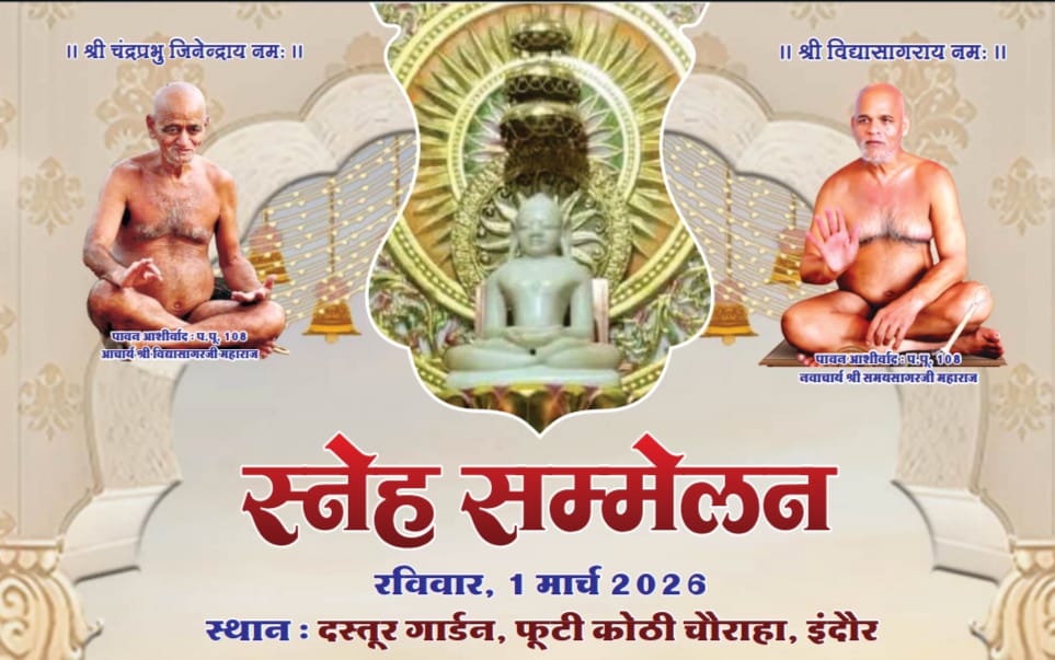 नगर की दिगंबर जैन परवार समाज का भव्य स्नेह मिलन एवं जनगणना निर्देशिका के विमोचन समारोह । धर्म समाज प्रचारक राजेश जैन दद्दू ने बताया कि श्री चंद्रप्रभु दिगंबर जैन परवार समाज धार्मिक एवं पारमार्थिक ट्रस्ट इंदौर के तत्वावधान में 1 मार्च 2026 रविवार को दोपहर 1: 30 बजे से दस्तूर गार्डन फूटी कोठी चौराहा इंदौर मे विभिन्न आयोजन के साथ आयोजित समारोह में परवार समाज जन