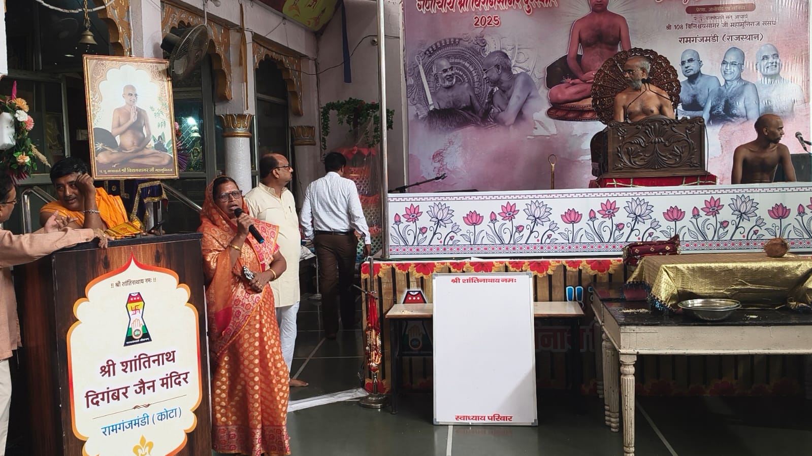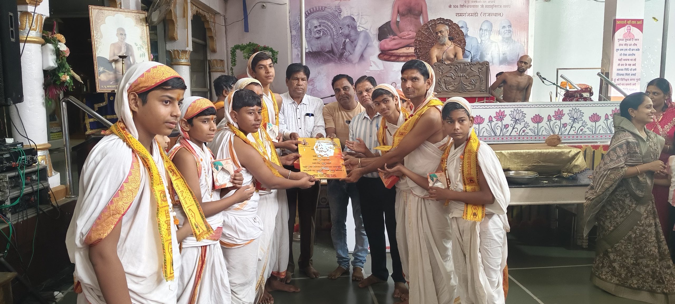 उन्होंने कहा पहले पहिले किसी के निधन होने पर 15 दिन में पत्र आता था, जब तक सूतक भी खत्म हो जाया करता था । मृत्यु आदि की सूचना बहुत बाद में मिलती थी, किंतु वर्तमान में मोबाइल ने राग आदि को बढ़ाया है । राग प्रशम भाव को समाप्त करता है । सोने चांदी के बर्तन में खाना खाया जा सकता है, लेकिन बनाया नहीं जा सकता। सोने चांदी के बर्तन में पूजा करने से आस्था नहीं बनेगी । आस्था तो चेतन भाव से बनेगी। उन्होंने जोर देते हुए कहा कि आज आप सभी यह संकल्प लें कि हम जब भी मंदिर आएगे मोबाइल लेकर नहीं आएंगे। यहीं से राग छोड़ने की शुरुआत करें । बूंद बूंद से घड़ा भरता है । छोटे छोटे त्याग से ही आप संयम की साधना की ओर कदम बढ़ा सकते हैं।