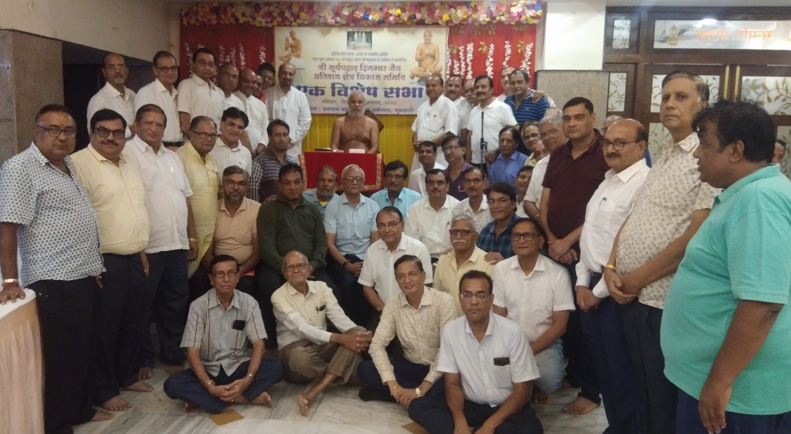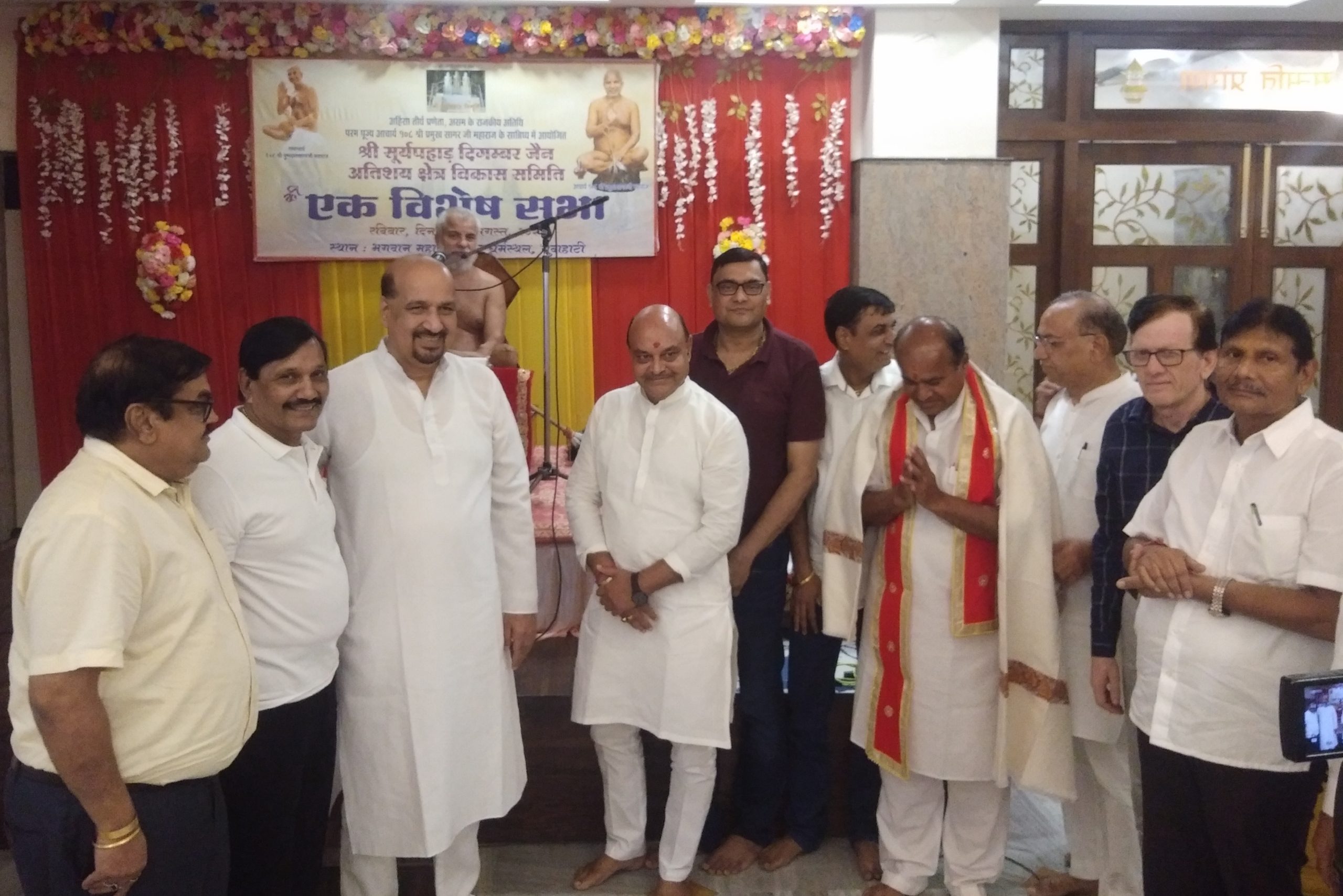 गुवाहाटी: स्थानीय एटी रोड स्थित भगवान महावीर भवन धर्म स्थल में आचार्य श्री प्रमुख सागर महाराज एवं धरियावद से आमंत्रित, प्रतिष्ठाचार्य श्री हंसमुख जी के सान्निध्य में पूर्वांचल की सकल दिगम्बर जैन समाज का एकमात्र तीर्थ श्री सूर्य पहाड़ अतिशय क्षेत्र के महत्वपूर्ण विषयों पर विचार विमर्श हेतु एक विशेष सभा का आयोजन किया गया है। जिसमें समिति के सभी सदस्यों सहित पूर्वांचल दिगम्बर जैन समाज के सभी अध्यक्ष/मंत्री, एवं संस्थाओं के सभी पदाधिकारीगण उपस्थित थे। समिति के उपाध्यक्ष ओम प्रकाश सेठी ने बताया कि कार्यक्रम का शुभारंभ विनोद छाबड़ा के स्वागत भाषण से हुआ। तत्पश्चात समिति के अध्यक्ष महावीर जैन(गंगवाल) ने सभा को संबोधित करते हुए कहा की सूर्य पहाड़ के विकास में पिछले 40 वर्षों से कई रुकावटे आ रही थी। आचार्य श्री के सानिध्य में अब इसका विकास होगा। इसलिए सकल जैन समाज को इससे जुड़ना होगा तभी सूर्य पहाड़ पंचकल्याणक का कार्य संपन्न होगा। हंसमुख शास्त्री ने भी सूर्य पहाड़ के विकास के लिए अपने विचार रखें तथा 26 जनवरी 2024 मे गुवाहाटी में पंचकल्याण कराने की अपनी सहमति प्रदान की। आचार्य श्री ने सभा में उपस्थित सभी लोगों को अपना मंगल आशीष प्रदान किया। कार्यक्रम में मंच का संचालन निरंजन कुमार गंगवाल ने किया तथा समिति के महामंत्री ललित अजमेर के धन्यवाद ज्ञापन के साथ सभा का समापन हुआ। मंच की व्यवस्था संजय रारा द्वारा की गई। तथा सभा में सम्मिलित समिति सदस्यों सहित बाहर से पधारे सभी अतिथियों के लिए अल्पाहार, वात्सल्य भोजन की व्यवस्था सुरेश कुमार बाकलीवाल एवं संजय जैन के संयोजन में महावीर स्थल में की गई। यह जानकारी समाज के प्रचार प्रचार विभाग के मुख्य संयोजक ओमप्रकाश सेठी एवं सह संयोजक सुनील कुमार सेठी द्वारा दी गई है।।