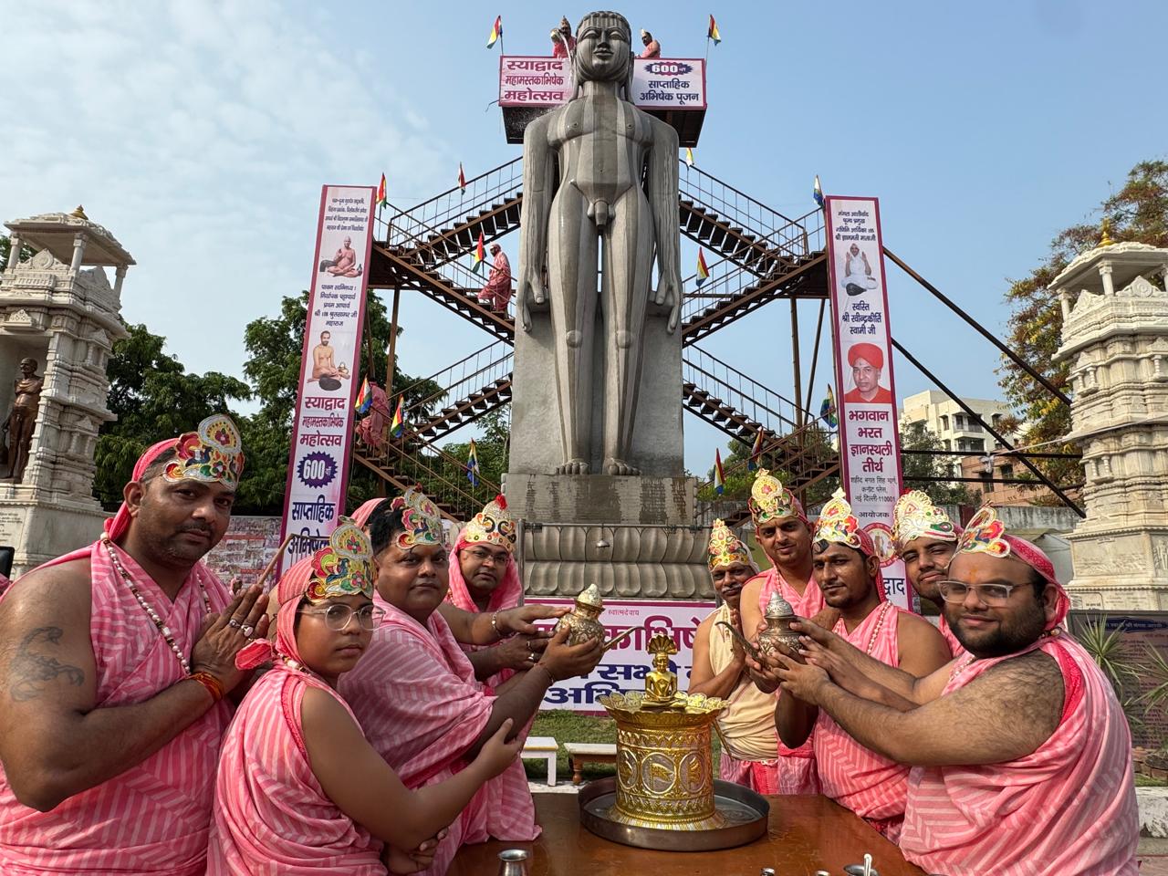 प्रातः 5:30 से ही दिल्ली में स्थित चक्रवर्ती भरत भगवान का एकमात्र मंदिर जयकारों से गुंजायमान हो रहा था। हल्के गुलाबी रंग के धोती-दुपट्टे एवं माला-मुकुट से सुसज्जित, उत्साह से भरपूर युवाओं द्वारा भगवान भरत की 31 फुट ऊंची प्रतिमा का महामस्तकाभिषेक किया गया। यह दृश्य श्रवणबेलगोला के भव्य आयोजन सम प्रतीत हो रहा था। आचार्य श्री के मुखारविंद से मंत्रोच्चारण के साथ शांतिधारा पूर्ण हुई।