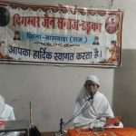 आचार्य श्री विराग सागरजी महाराज की सुशिष्या आर्यिका श्री विश्वासश्री माताजी द्वारा दिगंबर जैन समाज डडूका, जैन युवा समिति डडूका तथा दिगंबर जैन पाठशाला डडूका के बच्चों के साथ अपनी प्रवचन गंगा से अभूतपूर्व धर्म प्रभावना की जा रही है। प्रातः मूलनायक पार्श्वनाथ भगवान का जलाभिषेक माताजी द्वारा मंत्रोच्चार के साथ समाजजनों ने किया। नवमे तीर्थंकर भगवान पुष्पदंत नाथ के गर्भ कल्याणक पर्व पर अर्घ्य समर्पित किए गए। समाजजनों द्वारा आचार्य श्री विराग सागरजी महाराज जी की तस्वीर सम्मुख दीप प्रज्वलन कर प्रातःकालीन सभा का शुभारंभ किया गया। प्रातःकालीन सभा में माताजी ने कहा की देव, शास्त्र, गुरु के प्रति सच्ची श्रद्धा हमें वो सब कुछ दे देती है जिसको पाने की इच्छा हम अपने मन में रखते हैं। सच्चा जैन हमेशा अपने तीर्थंकरों ओर देव, शास्त्र ओर गुरु पर पूर्ण श्रद्धा और आस्था रखता है। माताजी ने कहा की जैसे संस्कार हमारी माता बहने अपने बच्चों को बचपन से देंगी वो वैसे ही बड़े हो कर बनेंगे। जब भी नगर में संत आते हैं तो वहां सोना, सोना हो जाता है और उनके विहार करते ही वहां सुना सुना हो जाता है। माताजी ने समाधिस्थ आचार्य श्री विराग सागरजी के जीवन की कई घटनाएं सुनाते हुए कहा की उनका जन्म 02मई 1963को पथरिया दमोह मध्यप्रदेश में हुआ था। उनकी माताजी का नाम श्यामा देवी ओर पिता श्री कपूर चंद जी थे।