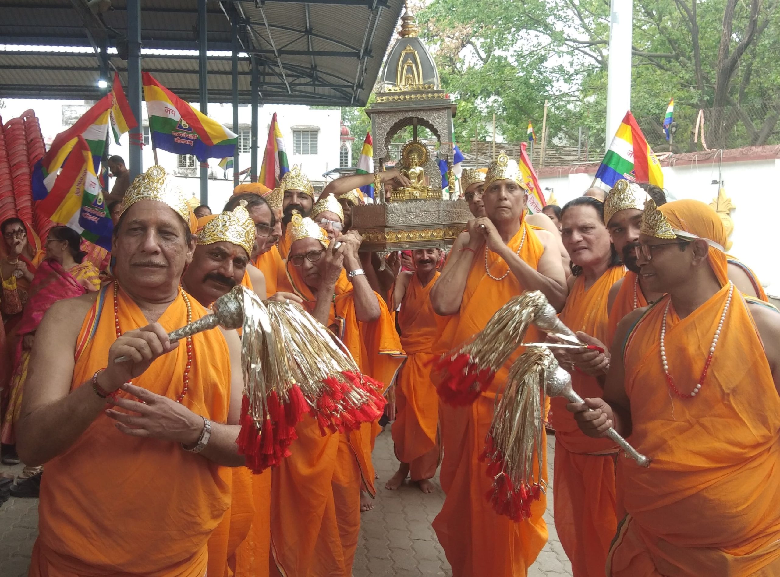 गुवाहाटी: जियो और जीने दो का संदेश देने वाले जैन धर्म के 24वें तीर्थंकर भगवान महावीर के 2624वें जन्म कल्याणक एवं 2550 वें निर्वाण महोत्सव के उपलक्ष पर धर्म परवाह न हेतु गुरुवार को एमएस रोड स्थित भगवान महावीर धर्म स्थल में सकल जैन समाज के तत्वाधान में श्रीजी को पालकी में विराजमान कर धर्मस्थल में भ्रमण कराया गया। तत्पश्चात विजय कुमार गंगवाल के संयोजन में अन्य कार्यक्रम आयोजित हुए। इस अवसर पर पुरुष श्वेत एवं महिलाएं केसरिया परिधान में सम्मिलित हुई। प्रचार प्रचार के मुख्य संयोजक ओमप्रकाश सेठी यह बताया कि श्रीजी को विराजमान करने का सौभाग्य कुंडलमल-प्रकाशचंद रारा (परिवार) को प्राप्त हुआ। श्रीजी की शांतिधारा एवं सर्वप्रथम आरती करने का सौभाग्य झूमरमल- पन्नालाल गंगवाल (परिवार) प्राप्त हुआ।सहसंयोजक सुनील कुमार सेठी ने बताया कि श्रीजी का सप्रथम अभिषेक करने का सौभाग्य जयकुमार-अनिल कुमार गोधा (परिवार), शांतिलाल- कमल कुमार बाकलीवाल (परिवार), नरेंद्र कुमार- मनीष कुमार सेठी (परिवार), ओम प्रकाश- संदीप कुमार सेठी(परिवार) एवं श्रीजी को माला चढा़ने का सौभाग्य ज्ञानचंद-राहुल कुमार सेठी(परिवार) को प्राप्त हुआ। कार्यक्रम में पंचायत के अध्यक्ष महावीर जैन (गंगवाल),सचिव वीरेंद्र कुमार सरावगी,चैयरमेन महावीर प्रसाद छाबड़ा, मानिकचंद छाबड़ा, उपाध्यक्ष ओम प्रकाश सेठी यूथ के अध्यक्ष सौरभ अजमेरा, विकास विनाक्या के अलावा सकल जैन समाज के सदस्य उपस्थित थे। इस अवसर पर एटी रोड स्थित महावीर भवन धर्म स्थल में समाज द्वारा सामूहिक गोठ का आयोजन किया गया। जिसमें बड़ी संख्या में समाज के लोगों ने भाग लिया। रामचंद्र सेठी आरती संयोजक ने बताया कि कार्यक्रम का समापन संध्याकालीन श्रीजी की आरती के साथ हुआ। इस तीन दिवसीय महोत्सव को सफलतापूर्वक आयोजन कराने में श्री दिगंबर जैन यूथ फेडरेशन, श्री दिगंबर जैन महिला समिति के अलावा समाज के सभी सदस्यों का सराहनीय योगदान रहा। यह जानकारी प्रचार प्रचार के मुख्य संयोजक ओमप्रकाश सेठी एवं सहसंयोजक सुनील कुमार सेठी द्वारा एक प्रेस विज्ञप्ति में दी गई है।।