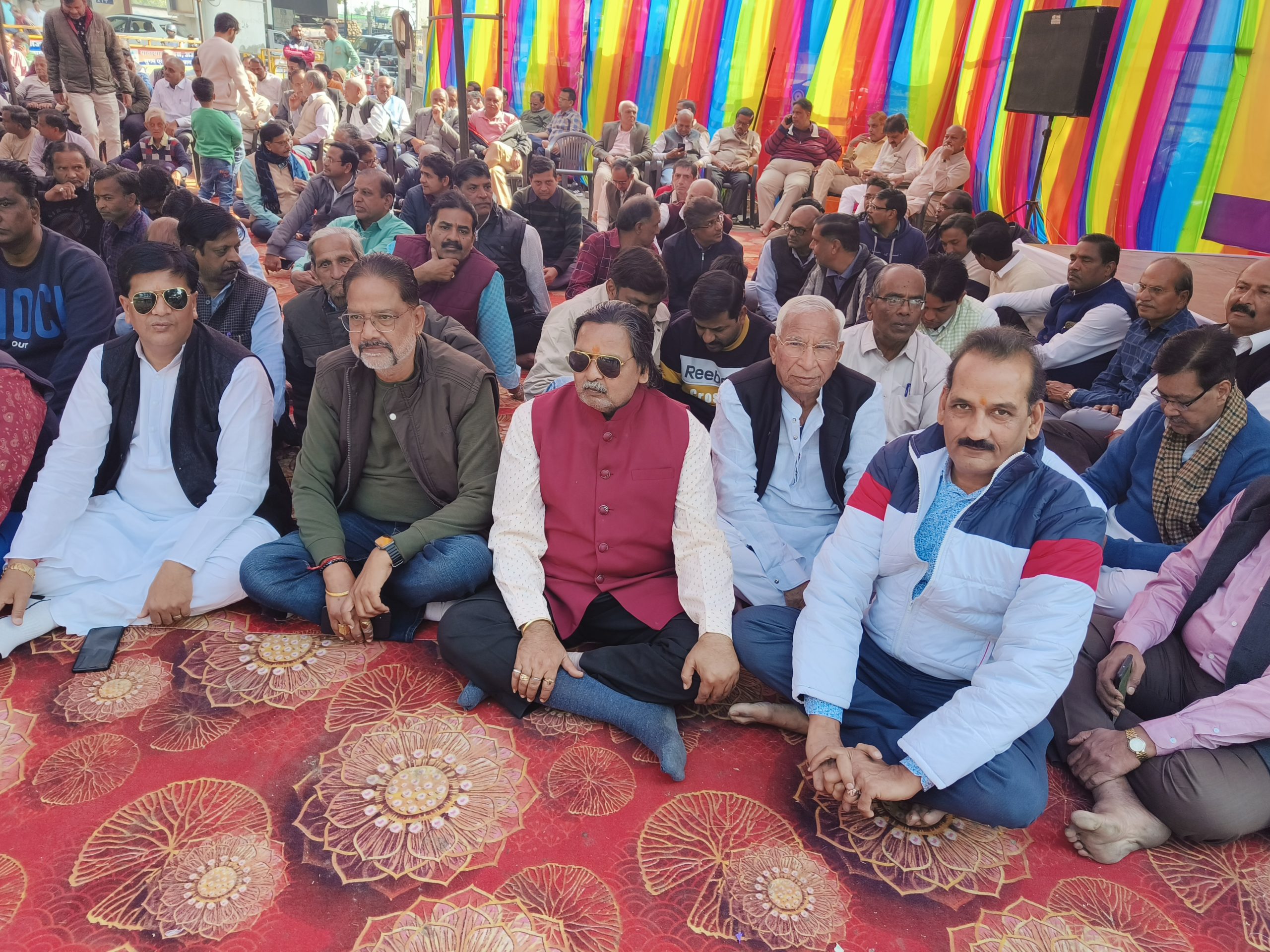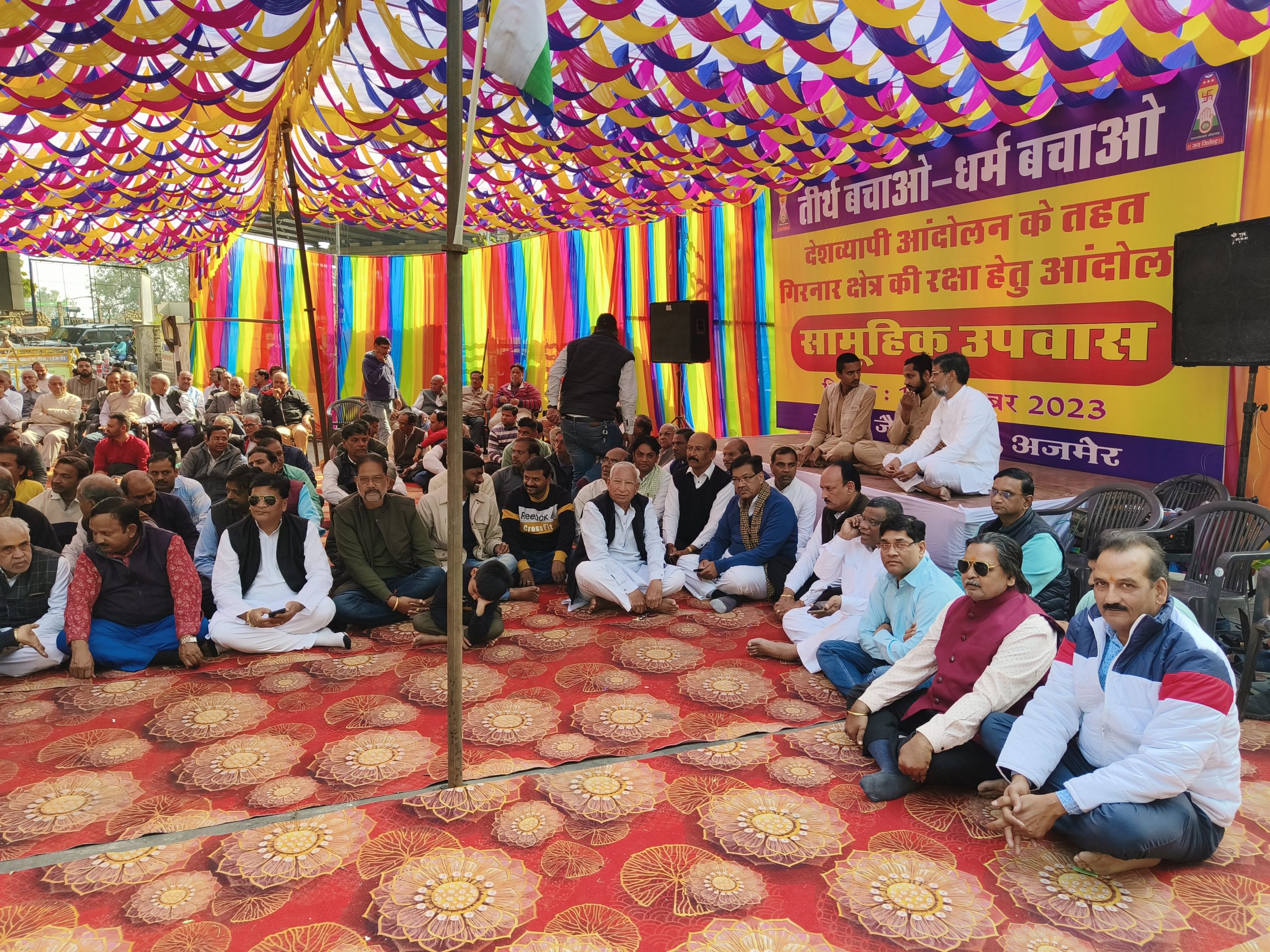 अजमेर 17 दिसम्बर, 2023 तीर्थ बचाओ धर्म बचाओ ’’ आन्दोलन के तहत आज पूरे भारतवर्ष के साथ अजमेर में सकल जैन समाज द्वारा सामूहिक उपवास व धरना गांधी भवन चौराहा पर महामंत्र णमोकार के गुणगान के साथ सम्पन्न हुआ ।