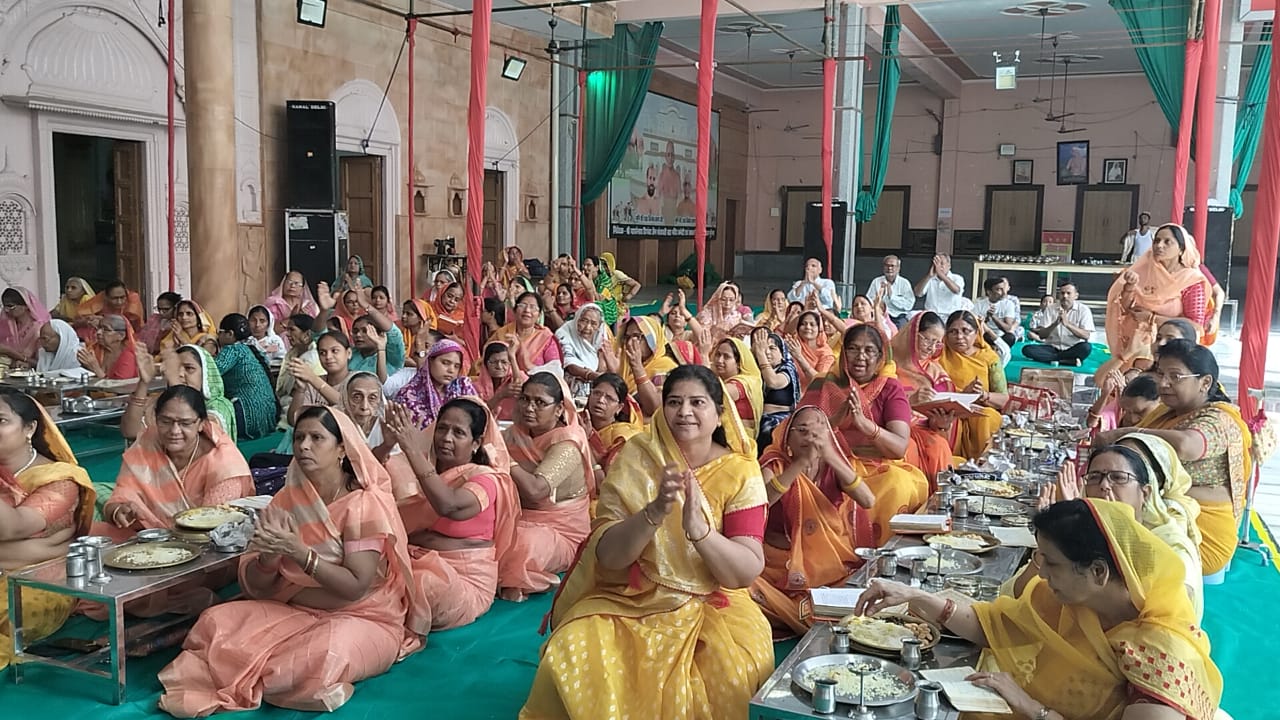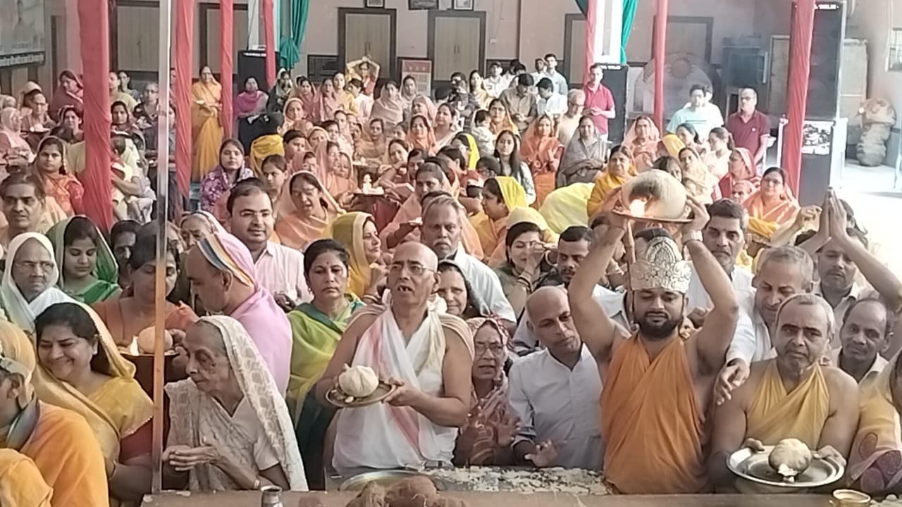 आठ दिवसीय श्री सिद्धचक्र महामंडल विधान एवं विश्व शांति महायज्ञ के प्रारंभ से पूर्व दिलीप जैन मधुवन दिल्ली द्वारा ध्वजारोहण किया गया । विधान के लिए सौधर्म इंद्र पवन कुमार सिद्धार्थ जैन, श्रीपाल मैनासुंदरी विमल शशि जैन बघपुरा, कुबेर इंद्र पंकज संगीता जैन मेडिकल, महा यज्ञनायक डालचंद निखिलकुमार बरहाना, यज्ञनायक नेमीचंद ममता जैन ट्रांसपोर्ट, भरत चक्रवर्ती भागचंद मुकुल जैन, ईशान इंद्र मीना सुरेशचंद केशव कालोनी, सानत इंद्र बनवारीलाल महेशचंद जैन का चयन किया गया । सभी पात्रों को पूज्य गुरुदेव ने सभी पात्रों को शुभाशीष प्रदान किया ।