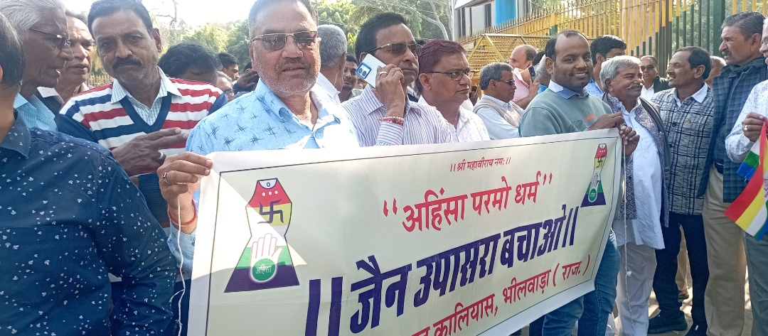भीलवाड़ा, 2 दिसम्बर। भीलवाड़ा जिले के आसीन्द क्षेत्र के कालियास गांव में 80 वर्ष से अधिक पुराने जैन उपाश्रय महावीर भवन को तोड़ने की धमकी देने के खिलाफ कालियास जैन समाज के साथ उसके समर्थन में भीलवाड़ा सकल जैन समाज भी साथ में आ गया। कालियास के साथ भीलवाड़ा शहर एवं जिले के विभिन्न क्षेत्रों से पहुंचे सैकड़ो जैन धर्मावलम्बियों ने कलक्ट्रेट के बाहर प्रदर्शन किया। समाज के प्रतिनिधियों ने जिला कलक्टर नमित मेहता को ज्ञापन देकर कालियास जैन उपाश्रय को किसी भी प्रकार की क्षति नहीं पहुंचाने के लिए सरपंच को निर्देशित करने की मांग की। श्री जैन श्वेताम्बर संघ कालियास के अध्यक्ष नौरतमल डूंगरवाल के नेतृत्व में दिए ज्ञापन में बताया गया कि कालियास का महावीर भवन उपाश्रय का कुछ समय पूर्व जीर्णाद्धार किया गया था। ये उपाश्रय किसी पंथ या सम्प्रदाय के संतों तक सीमित नहीं होकर उस मार्ग से विहार करने वाले सभी पंथ, पम्पराओं व सम्प्रदायों के साधु-साध्वियों के विश्राम के लिए महत्वपूर्ण स्थान है। आसपास के गांवों में संतो ंके निवास विहार आदि की उचित व्यवस्था नहीं होेने से भी कालियास के इस स्थानक का महत्व अधिक बढ़ जाता है। इस स्थानक का उपयोग विभिन्न समाजों के सामाजिक कार्यो के लिए भी होता है। इस स्थानक भवन के कारण गांव में कोई बाधा नहीं पहुंचने के बावजूद अब गांव के सरपंच शक्तिसिंह चुण्डावत ने कालियास के जैन समाज के कुछ बंधुओं को मौखिक सूचना दी है कि महावीर भवन को तोड़ा जाएगा। सरपंच द्वारा द्धेषतापूर्वक दी गई ये धमकी केवल कालियास के जैन समाज के लिए चिंता का विषय नहीं होकर सम्पूर्ण भीलवाड़ा जिले के जैन समाज के लिए चिंता का कारण बन गया है। ज्ञापन में जिला प्रशासन से इस मामले में दखल देकर सरपंच को उपाश्रय को किसी भी प्रकार की हानि नहीं पहुंचाने के लिए निर्देशित करने की मांग की गई। ज्ञापन में जिला प्रशासन से जैन उपाश्रय को बचाने में सहयोग करने का आग्रह किया गया। जिला कलक्टर मेहता ने इस मामले में सकारात्मक रूख दर्शाते हुए फिलहाल यथास्थिति बनाए रखने ओर जांच करा आवश्यक कार्रवाई करने का आश्वासन दिया। ज्ञापन देने से पूर्व समाज के लोग मुखर्जी उद्यान में एकत्रित हुए। जैन कॉन्फ्रेंस के प्रान्तीय मंत्री राजेन्द्र सुराणा ने ज्ञापन देने की आवश्यकता क्यों आई है इस बारे में बताया। यहां से कालियास के जैन समाज के साथ भीलवाड़ावासी जैन धर्मावलम्बियों व विभिन्न जैन संघों के पदाधिकारियों ने कलक्ट्रेट पहुंच कालियास के महावीर भवन उपाश्रय को बचाने की मांग करते हुए नारेबाजी की। उपाश्रय तोड़ने की धमकी देने वाले सरपंच के खिलाफ भी कार्रवाई की मांग करते हुए नारे लगाए गए। भगवान महावीर के जयकारो के साथ जैन एकता जिंद