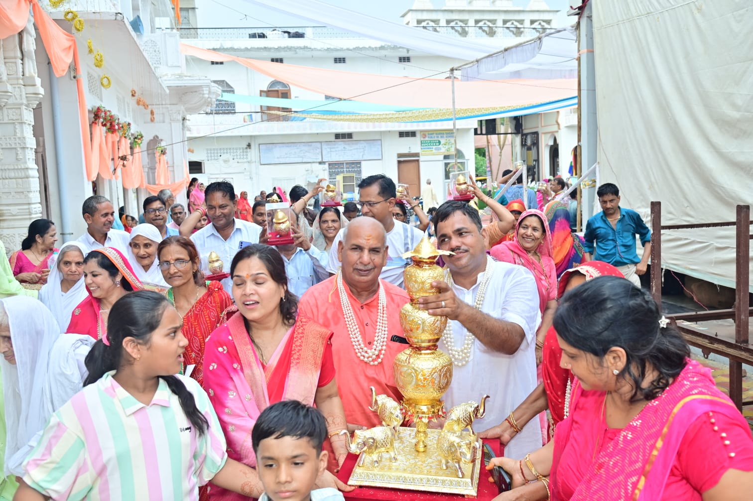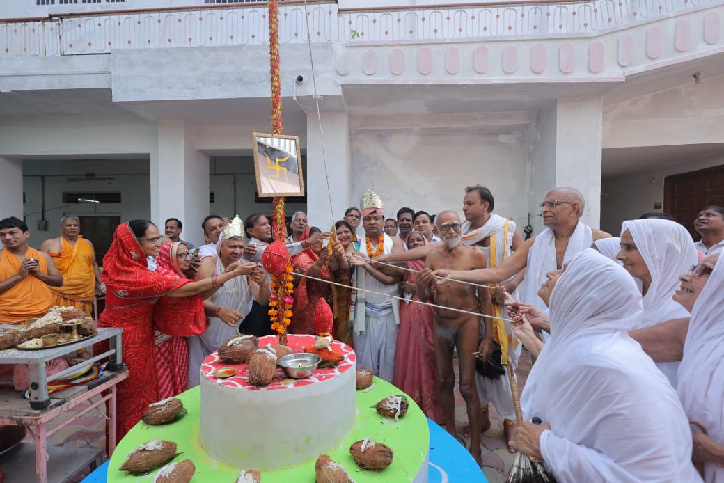 परम पूज्य 108 आचार्य इंद्रनंदी जी महाराज के परम प्रभावक शिष्य बालाचार्य 108 निपूर्णनंदी जी महाराज ससंघ का चातुर्मास के रजत कलशो की स्थापना रिद्धि सिद्धि मंत्रो के साथ श्री दिगंबर जैन नसियां अमीरगंज टोंक में 20 जुलाई शनिवार को स्थापित किए गए,समाज के मीडिया प्रकोष्ठ मंत्री एवं प्रवक्ता पवन कंटान एवं कमल सर्राफ ने बताया कि शनिवार को प्रातःकाल अभिषेक, शांतिधारा, के पश्चात नसिया प्रागण मे झंडारोहन किया जिसका सोभाग्य केलाश चद भागचंद अंशुल कुमार संघी ने किया दोपहर 1बजे आचार्य संघ को निमंत्रण किया ससंघ मंच पर विराजमान होने के बाद कार्यक्रम की विधिवत शुरुआत मंगलाचरण आदिनाथ महिला मंडल द्वारा किया गया चित्रअनावरण ,दीपप्रज्ज्वन प्रदेश भर से आए अतिथियों द्वारा किया गया वर्षायोग की प्रस्तावना,चातुर्मास हेतु अचार्य संघ को सकल समाज और कमेटी द्वारा श्रीफल भक्तिपूर्वक भेट किया गया अचार्य संघ द्वारा वर्षायोग की स्वीकृती ,तत्पश्चात अतिथि सत्कार और सम्मान किया गया बालाचार्य श्री का पूजन किया गया मंगल कलश स्थापना की गई जिसमें अरिहंत कलश महावीर प्रसाद धर्मेंद्रकुमार सोनू कुमार पासरोटियां ,सिद्ध कलश महावीरप्रसाद धर्मचंद सुमित कुमार दाखिया, आचार्य कलश त्रिलोकचंद ज्ञानचंद राजेश कुमार अशोककुमार पुनीत जैन बोरदा, उपाध्याय कलश पारसमल गंभीरमल,जितेंद्रकुमार जी, एस पप्पु नमक वाले, सर्व साधु कलश टीकमचंदश्याम लाल,लालचंद,आशु कुमार फूलेता, जाप्य कलश सौरभ कुमार टोनी कुमार जंबू कुमार आड़रा, अखण्डज्योति बाबूलाल शंभू कुमार पदम चंद अनिल कंटान को मिला तत्पशत पादपक्षालन,शास्त्रभेंट, संघ के उद्बोधन के पश्चात स्वर्ण एवं रजत कलशो की स्थापना रिद्धि सिद्धि मंत्रो के साथ श्रेष्टि परिवारों के द्वारा स्थापना की गई चातुर्मास वर्षायोग व्यवस्था समिति के अध्यक्ष धर्मचंद दाखिया एवं मंत्री धर्मेंद्र जैन पासरोटियां ने बताया कि कलश स्थापना में प्रदेश भर से लोग सम्मलित हुए समाज के अध्यक्ष भागचंद फूलेता एवं राजेश सर्राफ रविवार को प्रातः काल बालाचार्य निपूर्ण नन्दी जी महाराज के साथ गुरु पूर्णिमा महोत्सव बड़े धूमधाम से मनाया गया महाराज जी ने अपने प्रवचनों में कहा की जिसके जीवन में गुरु नहीं उसका जीवन शुरू नहीं अपने जीवन में छोटे-छोटे नियम लेकर हम अपने जीवन का कल्याण कर सकते हैं सिद्ध चक्र महामंडल विधान में 1024 अर्घ समर्पित किए गए सोमवार को इस विधान की पूर्णाआहुति होगी जिसके अंदर विश्व शांति के लिए हवन किया जाएगा इस मौके पर नेमीचंद बनेठा सुरेंद्र अजमेरा प्रदीप नगर अनिल चैनपुरा वाले पन्नालाल जुनिया नंदलाल संगी धर्मचंद आंडरा रमेश काला कमलेश कली वाले आदि लोग मौजूद थे