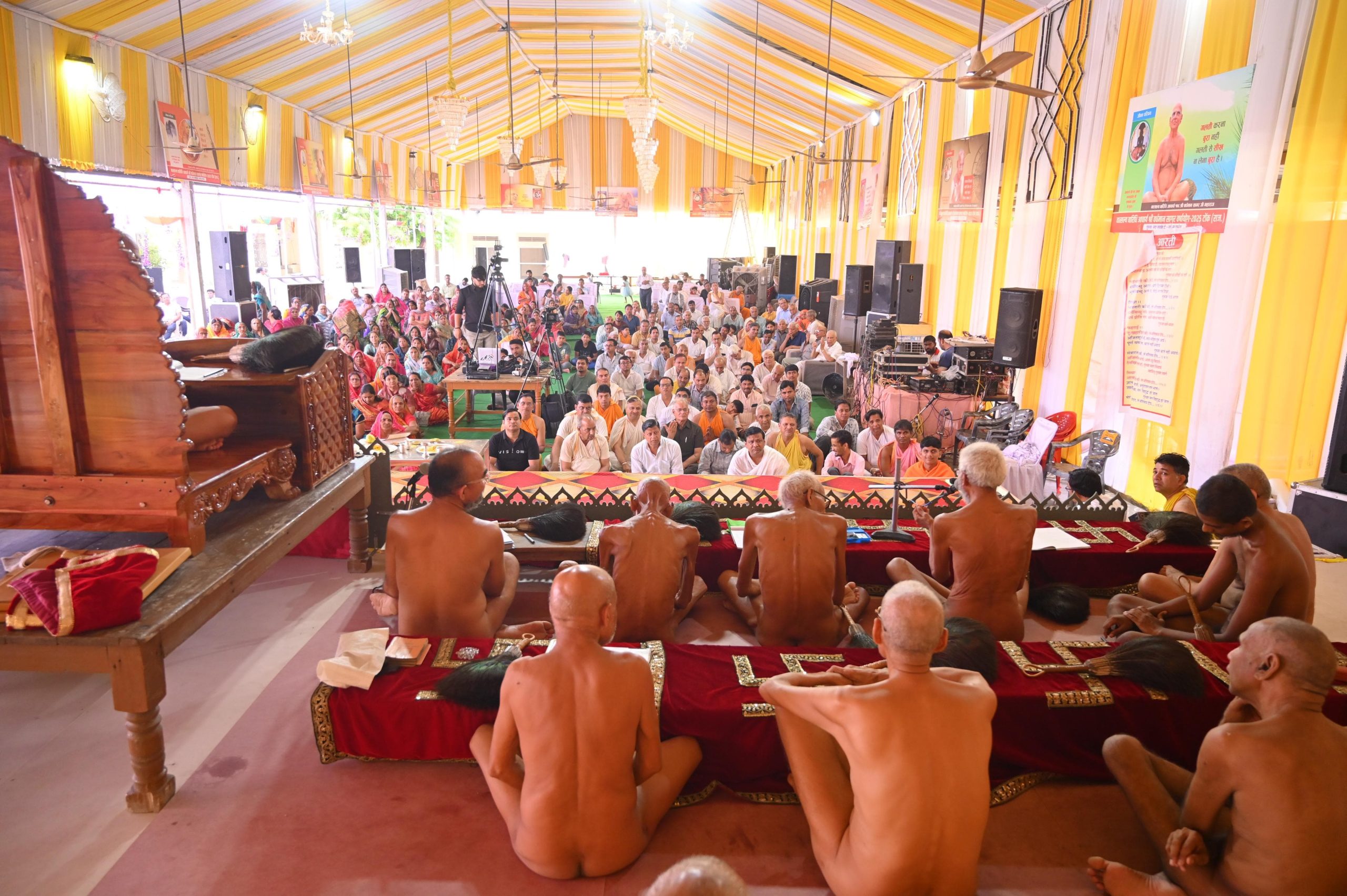 जैन धर्म प्रचारक पवन कंटान व विकास जागीरदार अनुसार धर्म सभा से पूर्व श्रीजी एवं आचार्य शांतिसागर, आचार्य वीर सागर, आचार्य शिव सागर, आचार्य धर्म सागर, आचार्य अजीत सागर महाराज के चित्र अनावरण एवं दीप प्रज्वलन कर अर्घ्य समर्पित किया गया। तत्पशात आचार्य श्री का पाद प्रक्षालन एवं जिनवाणी भेंट की गई।