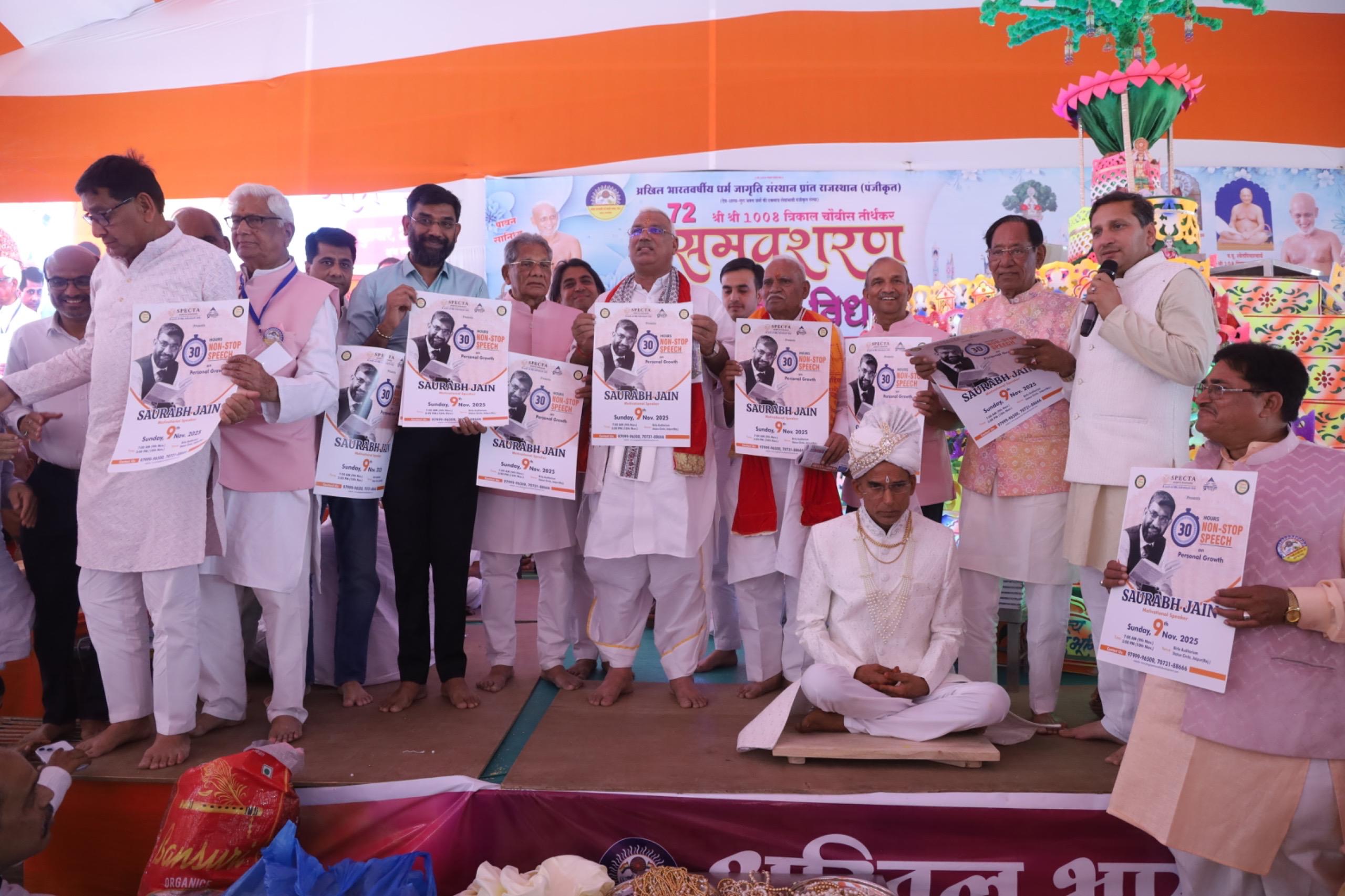 अतिशय क्षेत्र बाड़ा पदमपुरा की पावन धरा पर दिगंबर जैन आचार्य वसुनंदी महामुनिराज ससंघ सानिध्य में अखिल भारतवर्षीय धर्म जागृति संस्थान राजस्थान प्रान्त द्वारा आयोजित तीन दिवसीय भूत-भविष्य-वर्तमान त्रिकाल चौबीसी 72 समवसरण विधान का विधि विधान हवन व मंत्रोच्चार के साथ समापन हुआ तो इस अवसर पर दो जैनेश्वरी दीक्षाएं भी संपन्न हुई।