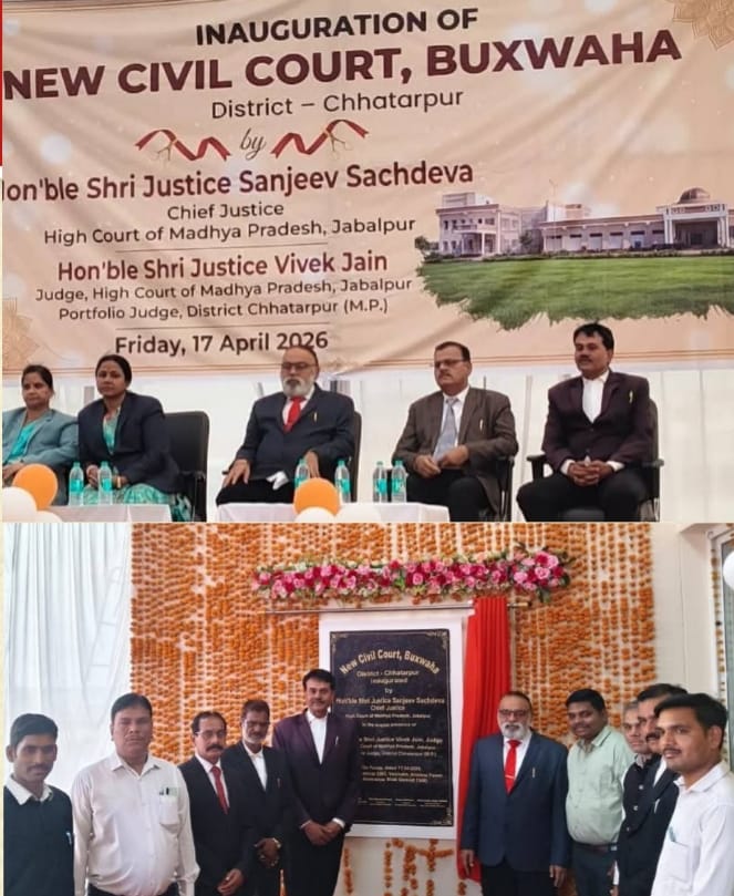 बकस्वाहा //- 17 अप्रैल शुक्रवार को यहां के आधुनिक सुविधा युक्त नवनिर्मित न्यायालय भवन का ई – (वर्चुयल) लोकार्पण मध्य प्रदेश उच्च न्यायालय जबलपुर के माननीय मुख्य न्यायाधीश श्री संजीव सचदेवा जी ने पोर्टपोलियो जज श्री विवेक जैन जी के साथ गरिमामय समारोह में किया । इस मौके पर माननीय मुख्य न्यायाधीश महोदय श्री सचदेवा जी ने इस नवीन न्यायालय भवन में मौजूद सुविधाएं,आधुनिक संसाधनों के बारे में प्रकाश डाला। इस पिछड़े अविकसित क्षेत्र को आधुनिक सुविधाओं से युक्त भवन की सौगात देकर न्याय मंदिर से सुलभ न्याय प्रदान कराने की महति भूमिका अदा की गई।