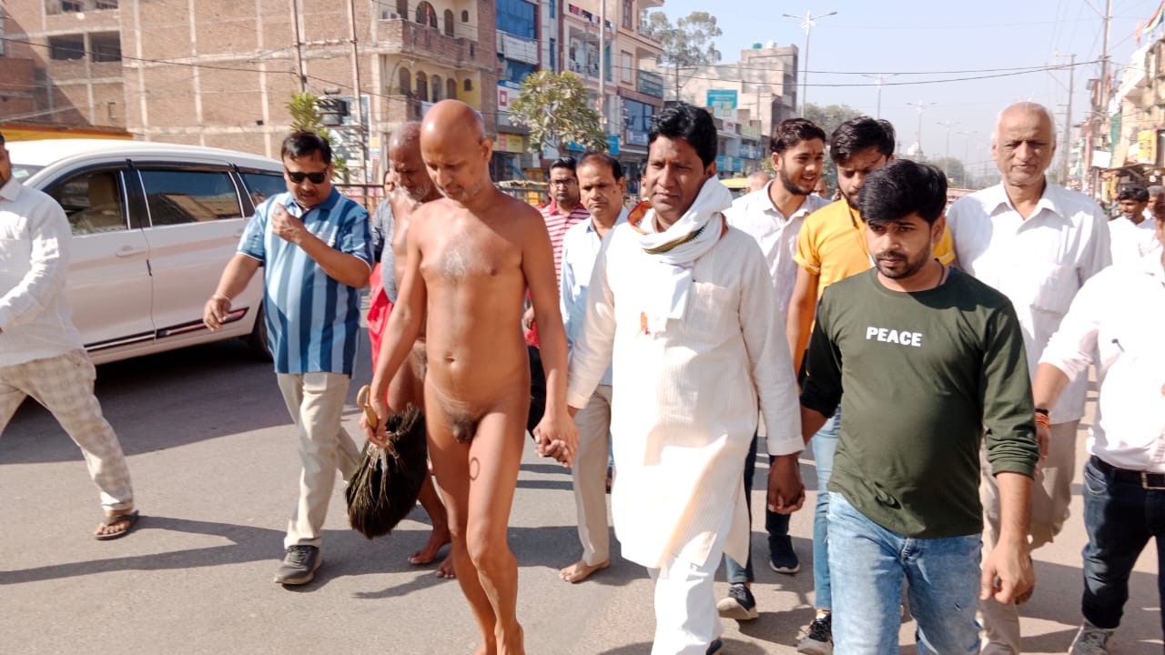 भिंड/गणाचार्य विराग सागर जी महाराज के परम शिष्य मेडिटेशन गुरु बरासो वाले बाबा विहसन्त सागर महाराज मुनिश्री विश्वसाम्य सागर जी महाराज का भिंड नगर में भव्य मंगल प्रवेश 17 मार्च को सुबह 8 बजे हुआ जिसमे