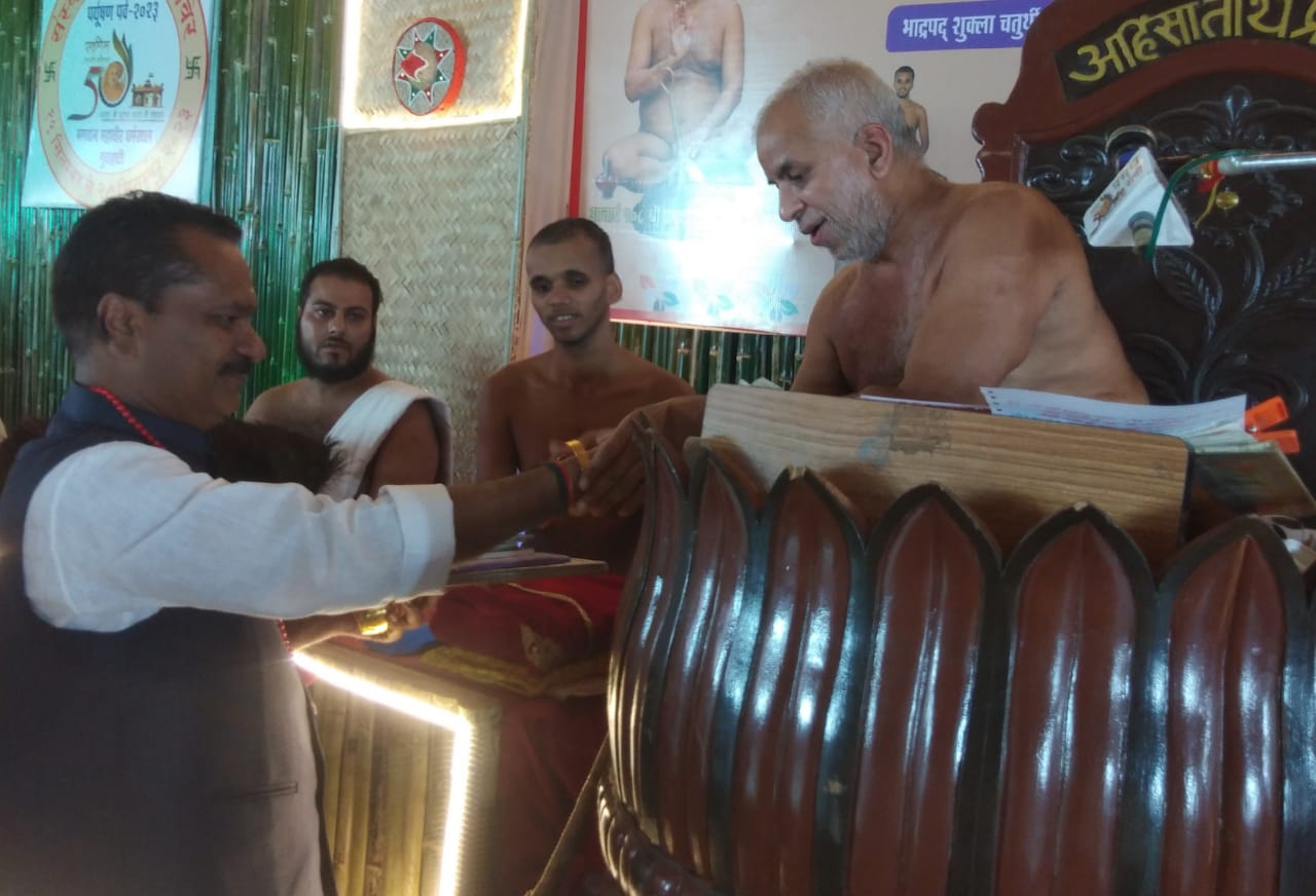 गुवाहाटी : फैंसी बाजार स्थित भगवान महावीर धर्म स्थल में असम सरकार के शहरी विकास मंत्री अशोक सिंघल ने आज शुक्रवार को आचार्य श्री प्रमुख सागर महाराज के दर्शन कर विशेष प्रवचन में हिस्सा लिया। आचार्य श्री ने श्री सिंघल को मोतियों की माला, शास्त्र आदि भेंट कर मंगल आशीष प्रदान किया।तत्पश्चात उत्तम सोच धर्म पर प्रवचन करते हुए आचार्य श्री ने कहा कि हमारे मन में, हमारे वचन में, हमारी काया में इतनी अपवित्रता आ गई है कि उसे पवित्र करना मुश्किल हो गया है। आपने कहा कि प्रत्येक आत्मा में निर्मल होने की शक्ति है पर जब उसे गंदा करने का प्रयत्न चल रहा है तो वह निर्मल कैसे हो सकेगी ? उत्तम सोच धर्म हमें उसी शुचिता की ओर ध्यान दिलाता है। लोभ का अभाव ही पवित्रता है, शुचिता है।लोभ कषाई को पाप का बाप माना है, क्योंकि प्रत्येक दुराचार- अनाचार की तह में लोभ निहित होता है। लालच, तृष्णा, लालसा ,चाह आदि लोभ के ही नाम है। उन्होंने जेल परिसर में बना रहे पार्क का नामकरण भगवान महावीर के नाम से किए जाने का जिक्र करते हुए कहा कि जहां पहले फांसी दी जाती थी वहां से यदि सारी दुनिया को अहिंसा का संदेश प्रेषित किया जाए तो यह बहुत अच्छी बात होगी। इस मौके पर श्री सिंघल ने जैन नियमों के प्रति अपनी आस्था प्रकट की उन्होंने कहा की जैन समाज से अगर कुछ सीखना है तो त्याग और आत्म समर्पण करना सीखना चाहिए ।इस दस लक्षण पर्व में जो हम पालन करते हैं, जो हम सीखते हैं, उस सात्विकता को हम अपने जीवन में कैसे ला सकते हैं इस पर भी आप लोगों को विचार करना चाहिए। उन्होंने कहा की आचार्य श्री के सानिध्य मे, आशीर्वाद से, मंगल प्रवचन से और उनकी ज्ञानवाणी से हम सभी को एक नई दिशा और नई रोशनी मिलेगी। उन्होंने आगामी जनवरी में होने वाले पंचकल्याणक महोत्सव में जैन समाज को असम सरकार की ओर से पूरा सहयोग देने का आश्वासन दिया। दिगंबर जैन पंचायत के अध्यक्ष महावीर जैन ने भी सभा को संबोधित किया। पुष्प प्रमुख वर्षा योग समिति के मुख्य संयोजक ओमप्रकाश सेठी ने बताया कि आज शुक्रवार को प्रातः उत्तम शौच धर्म के पावन अवसर पर महावीर धर्मस्थल में आचार्य श्री के मुखारविंद से शांतिधारा करने का परम सौभाग्य संतोष कुमार- महेंद्र कुमार पांडया परिवार ईटानगर/ गुवाहाटी एवं ओमप्रकाश- प्रभा देवी सेठी परिवार बेंगलुरु/गुवाहाटी को प्राप्त हुआ। इस अवसर पर समाज के चेयरमेन महावीर प्रसाद छाबड़ा, मंत्री वीरेंद्र कुमार सरावगी, उपाध्यक्ष कमल कुमार गंगवाल, ओम प्रकाश सेठी, अशोक कुमार छाबड़ा ,संजय रारा आदि गणमान्य लोगों के अलावा काफी संख्या में समाज के सदस्यों उपस्थित थे। यह जानकारी प्रचार-प्रसार विभाग सहसंयोजक सुनील कुमार सेठी द्वारा दी गई है।।