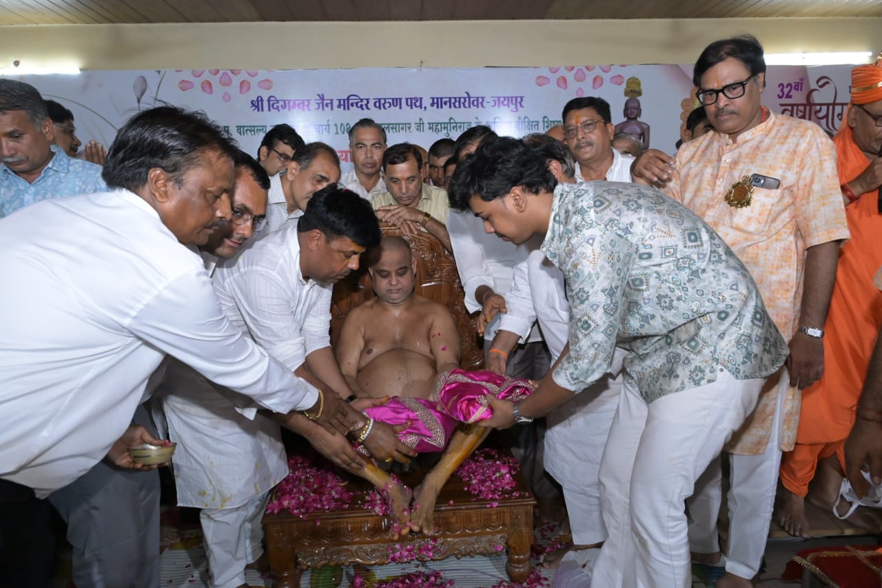 जयपुर में वरूण पथ मानसरोवर में उपाध्याय श्री 108 उर्जयन्त सागर महाराज के पावन चातुर्मास 2025 की स्थापना अनेक धार्मिक कार्यक्रमों के आयोजित हुई कार्यक्रम में दिगंबर मंदिर समिति अध्यक्ष एम.पी. जैन के अनुसार