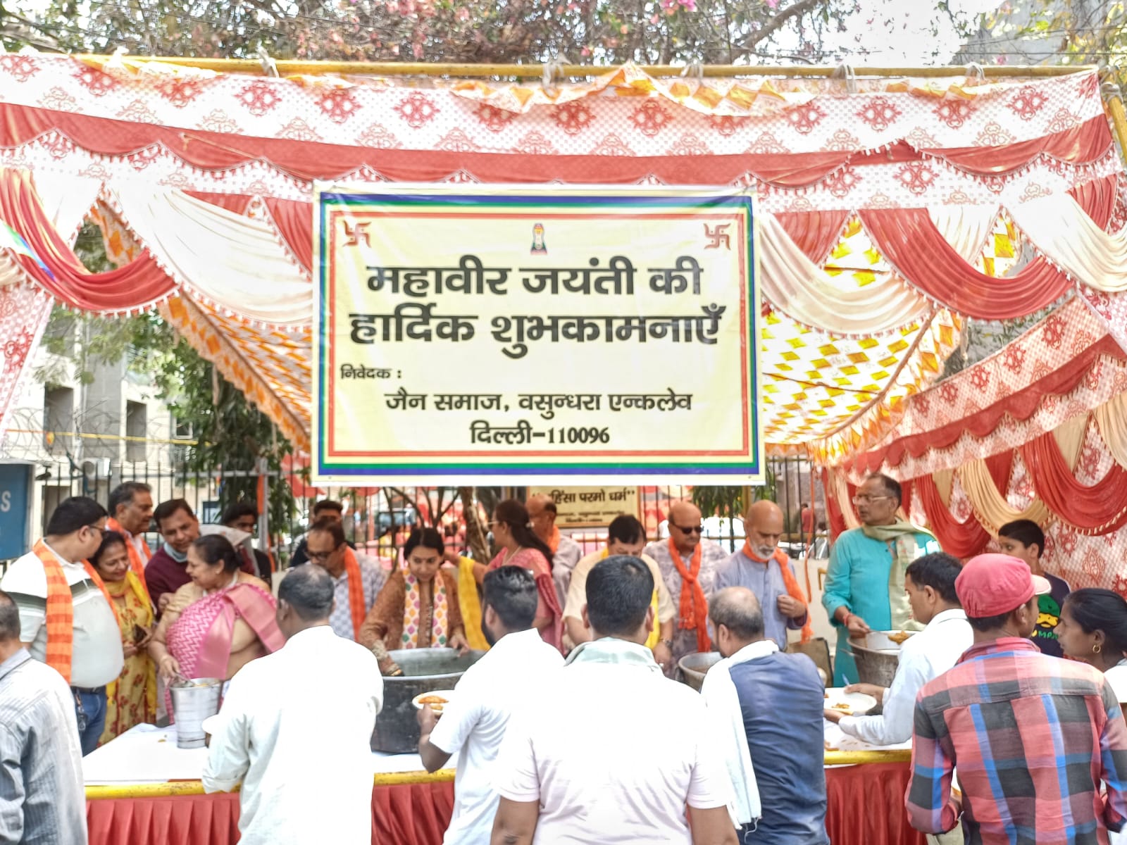सीईएल अपार्टमेंट के बाहर एक “विशाल भंडारा” आयोजित किया गया। जहां आसपास के क्षेत्रों से अधिक से अधिक लोगों को भोजन (प्रसादम) प्रदान किया गया। इस अवसर पर मुख्यअतिथियों में क्षेत्रीय विधायक श्री कुलदीप जी, क्षेत्रीय पार्षद सुश्री मुनेश डेढ़ाजी की उपस्थिति रही। जैन समाज के अध्यक्ष श्री शरद जैन, उपाध्यक्ष श्री पवन जैन और सचिव श्रीमती शालिनी जैन ने उनका तिलक लगाकर और पटका भेंट कर सम्मान किया। अन्य सम्मानित अतिथियों में संयुक्त मंच से श्री जे पी शर्मा जी अध्यक्ष), विधायक प्रतिनिधि श्री कत्याल जी, सामाजिक कार्यकर्ता सुश्री अनीता बहल, सनातन धर्म सभा की सचिव श्रीमती शैफाली शर्मा, वरिष्ठ नागरिक मंच के अध्यक्ष श्री आई डी शर्मा जी, श्री एम के भट्ट जी और सीईएल अपार्टमेंट के सचिव श्री राजेश खन्ना जी भी शामिल थे। उन्होंने सेवा की और भक्तों को भोजन परोसा और प्रसाद ग्रहण किया। उन्होंने जैन समाज को इतनी बड़ी सामाजिक सेवा के लिए धन्यवाद दिया। मंच पर बच्चों द्वारा जैन भजनों का आयोजन भी किया गया। बच्चों की भक्ति और भजनों के साथ पूरा माहौल उत्सवमय था।