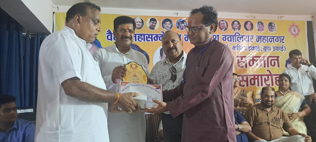 ग्वालियर (मनोज जैन नायक) वैश्य महासम्मेलन मध्यप्रदेश युवा इकाई ग्वालियर महानगर द्वारा माननीय श्री उमाशंकर जी गुप्ता प्रदेश अध्यक्ष वैश्य महासम्मेलन मध्यप्रदेश के जन्मदिवस के उपलक्ष में सोमवार 24 जून 2024 को सम्मान दिवस पर