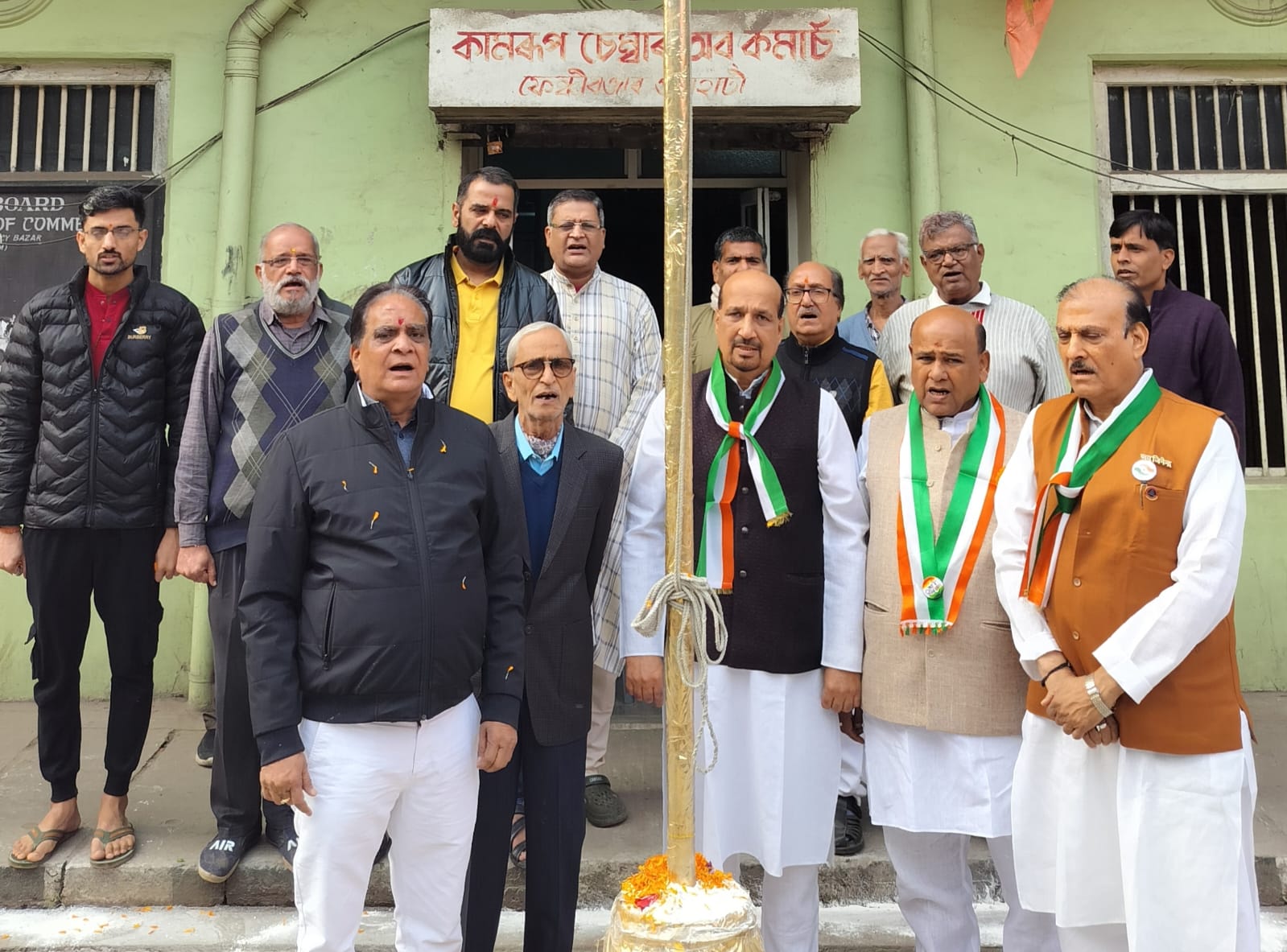 2) *कामरूप चैंबर*: कामरूप चैंबर ऑफ़ कॉमर्स द्वारा 76वें गणतंत्र दिवस के उपलक्ष में संस्था के अध्यक्ष महावीर जैन,उपाध्यक्ष कैलाश काबरा, सलाहकार रामपाल सिकरिया, कार्यकारिणी सदस्य पुखराज पांडया, सदस्य किशोर काला, विमल बिहानी, देवेंद्र सेठिया, सत्यनारायण जोशी, आदि की उपस्थिति में राष्ट्रीय ध्वज फहराया गया। इस अवसर पर चैंबर की ओर से जिलाधिकारी के सहयोग से शिशु कल्याण सदन, केंद्रीय कारागार, बी. बरूआ कैंसर इंस्टीट्यूट, टीवी हॉस्पिटल आदि मे मिठाई, बिस्कुट,फल का वितरण किया गया।।