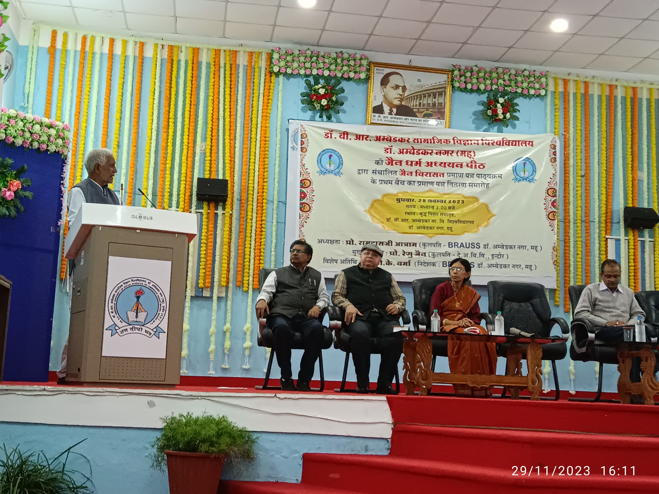 उक्त विचार देवी अहिल्या विश्वविद्यालय इंदौर की कुलपति प्रोफेसर डाक्टर श्रीमती रेणु जैन ने श्रमण संस्कृति विद्या वर्धन ट्रस्ट कमेटी के अंतर्गत डॉ भीमराव अंबेडकर विश्वविद्यालय के सामाजिक विज्ञान विभाग द्वारा संचालित कोर्स जैन विरासत पत्राचार पाठ्यक्रम के प्रथम सेशन में सफल हुए दीक्षार्थीयों को प्रमाण पत्र वितरित कार्यक्रम के दौरान मुख्य अतिथि के रूप में व्यक्त किए। कार्यक्रम की अध्यक्षता प्रोफेसर रामदास जी आत्राम कुलपति डॉ बी आर अम्बेडकर सामाजिक विज्ञान विवि द्वारा की गई।