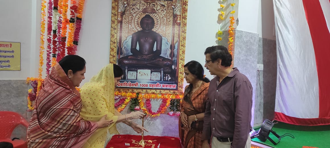 मंगलाचरण में भक्ति से नृत्य करके कार्यक्रम का भव्य शुभारंभ हुआ छोटे छोटे पाठशाला के बच्चों ने जैन धर्म पर आधारित प्रस्तुतियां दी तों सारे दर्शकों ने करतल ध्वनि से सभी का स्वागत किया