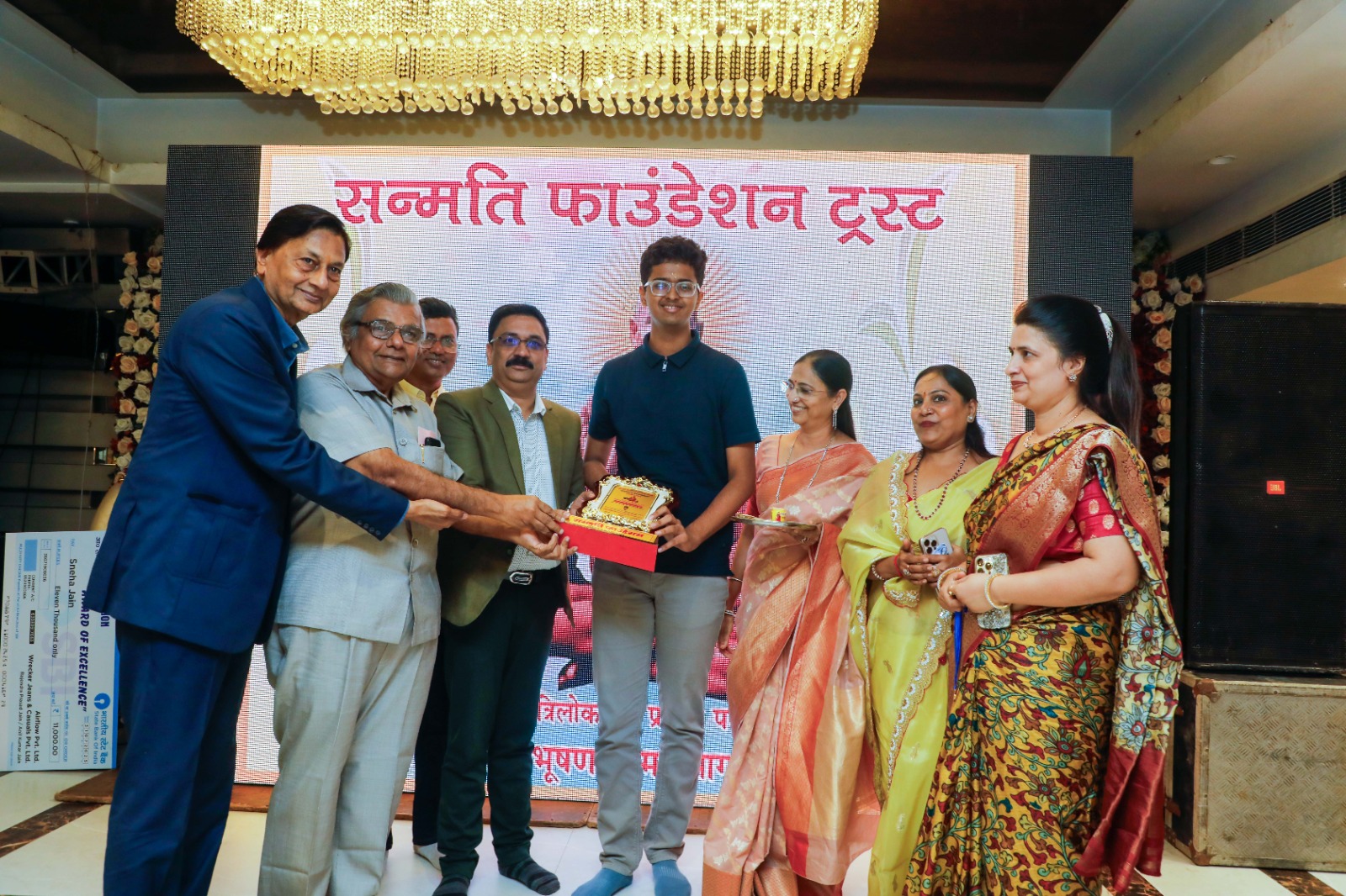 आचार्य श्री विद्याभूषण सन्मतिसागर जी अवार्ड में 12वीं में चार बच्चों को और 10वीं क्लास में टॉप 3 स्टूडेंट्स को अंक प्रतिशत के आधार पर दिया गया। 12वीं में प्रथम अवार्ड अविरल जैन-कोलकाता (98.%), द्वितीय पुरस्कार शौर्य जैन-आगरा (96.5%), तृतीय जियांश जैन-दिल्ली एवं स्नेहा जैन-फरीदाबाद (96%) को दिया गया। 10वीं में प्रथम स्थान स्वास्तिक जैन (98.6%), द्वितीय प्राइज सानवी जैन-ग्रेटर नोएडा (97.8%) और तृतीय प्राइज सिद्धांत जैन -दिल्ली (97%) ने प्राप्त किया। प्रथम प्राइज में ₹ 31000/ का चेक व गोल्ड मेडल, द्वितीय प्राइज में ₹ 21000/ का चेक व सिल्वर मेडल और तृतीय प्राइज में ₹11000/ का चेक व ब्रॉन्ज मेडल दिए गए। सभी बच्चो को मोमेंटो दिये गये। इन सभी बच्चों को नगद राशि के चेक Wrecker Jeans & Casuals Pvt. Ltd. तथा Air Flow Pvt. Ltd. की तरफ से प्रदान किए गए।