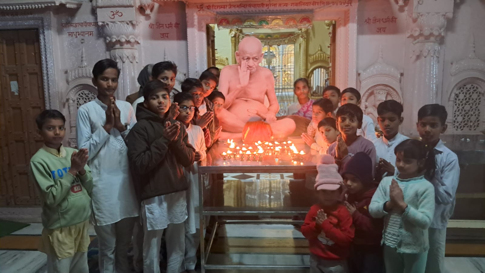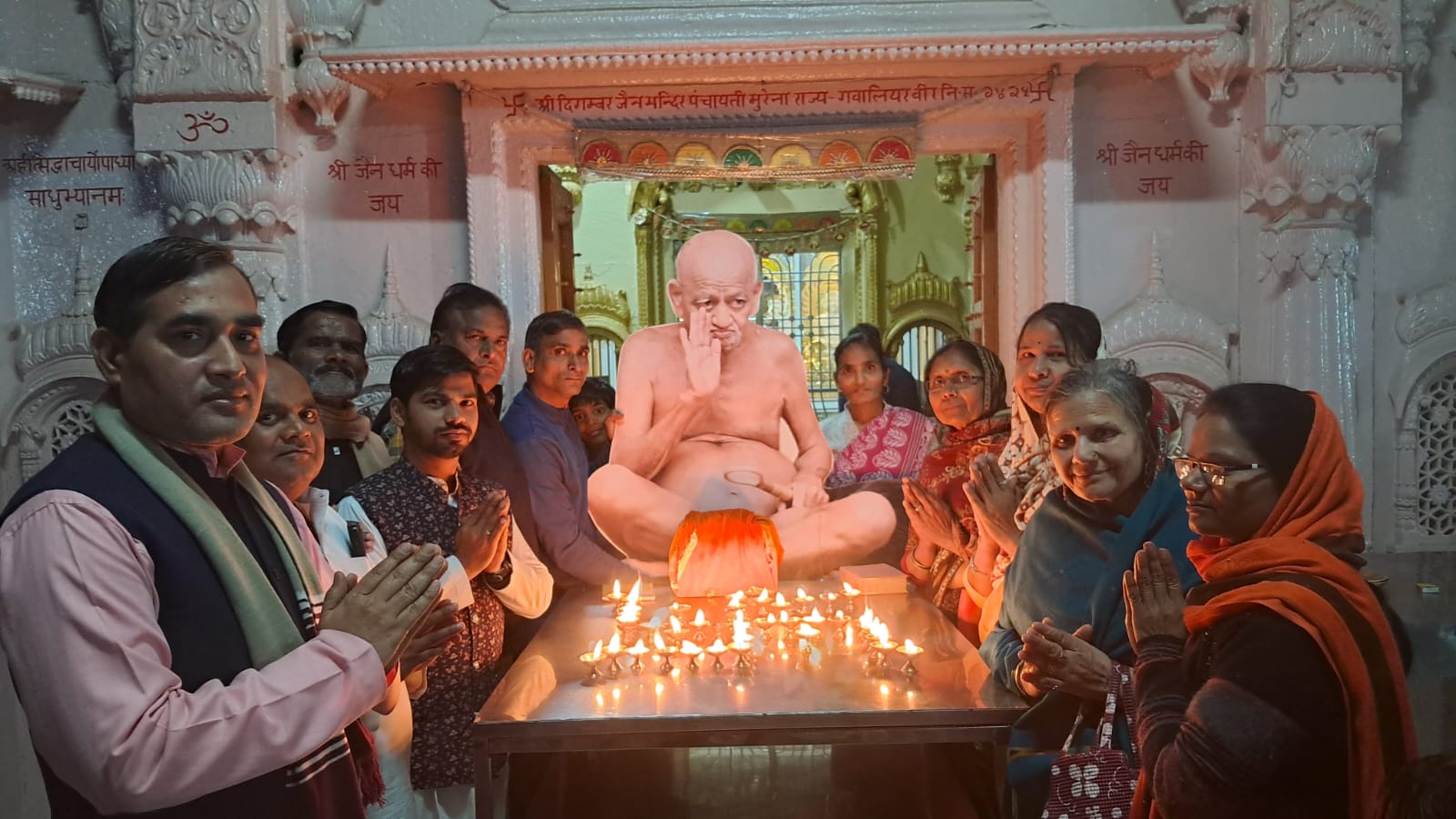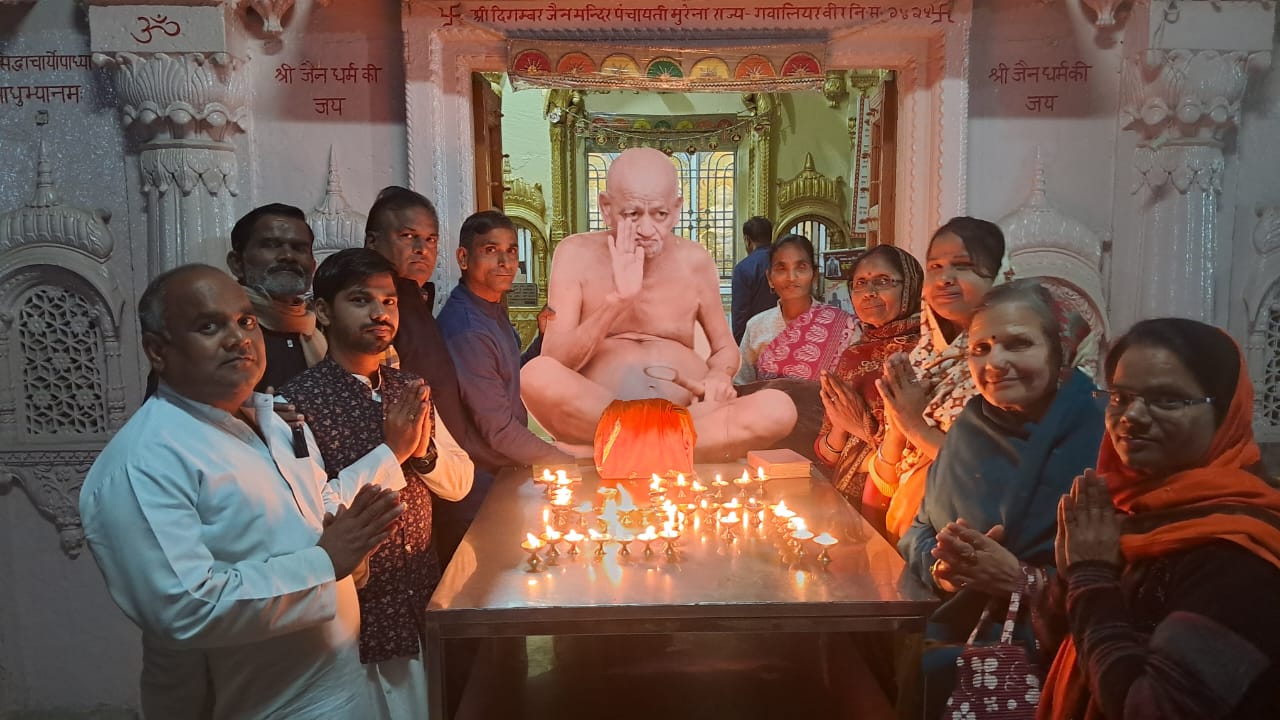 संत शिरोमणि पूज्य आचार्य श्री विद्यासागर जी महाराज के प्रथम समाधि स्मरण दिवस पर दिनांक 6 फरवरी गुरुवार को श्री पार्श्वनाथ दिगंबर जैन पंचायती बडा मंदिर मुरैना में प्रातःकालीन आ. श्री विद्यासागर महामुनिराज की पूजन की गई और संध्याकालीन बेला में महासंत की 11 महादीपकों के माध्यम से बृहत महाआरती सम्पन्न हुई।