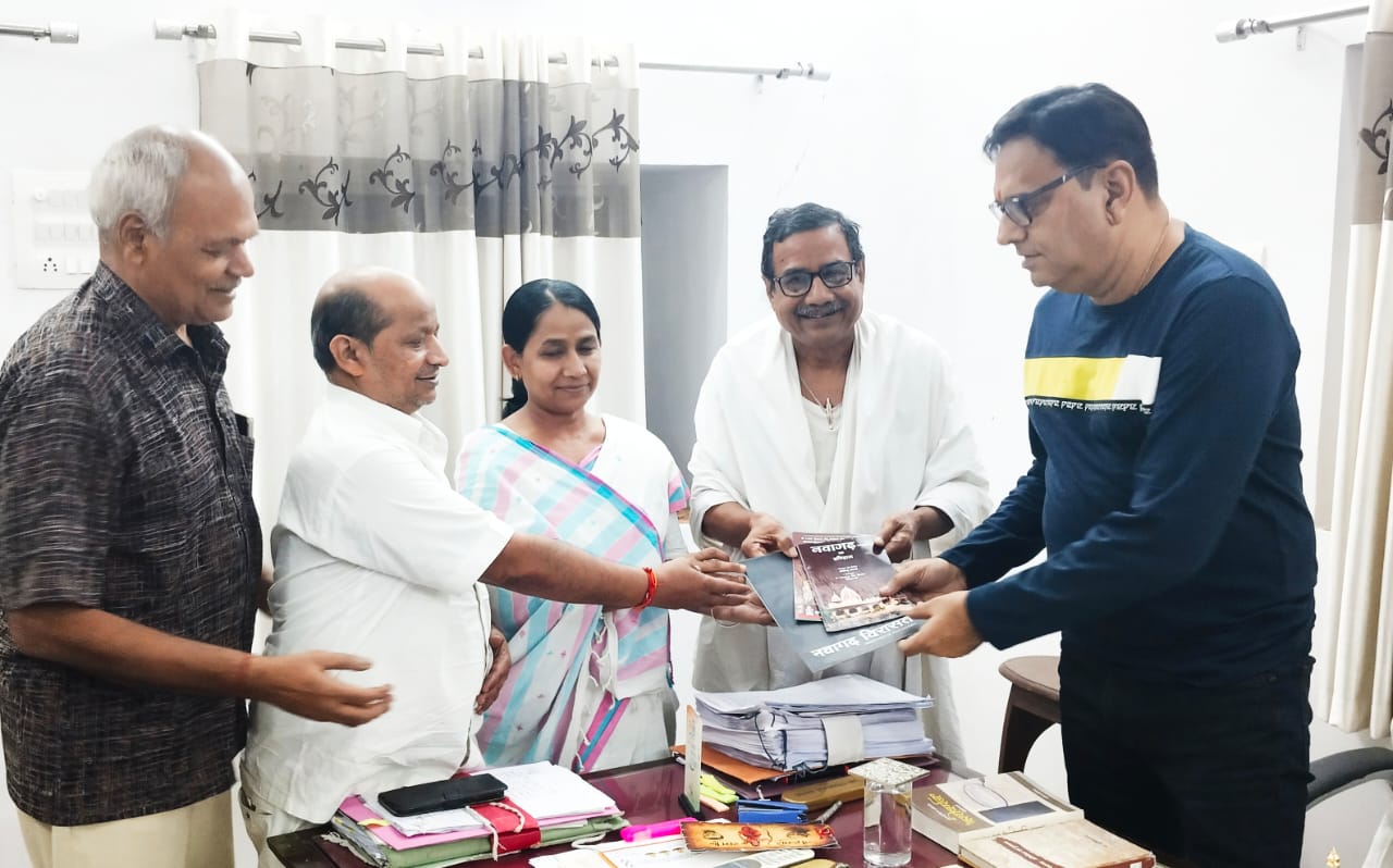 प्रचारमंत्री डॉ सुनील संचय ने बताया कि निवाड़ी डिप्टी कलेक्टर सुश्री विनीता जैन के साथ नरेंद्र जैन बैंक, ज्ञानचंद जैन ज्ञान मेडिको ने नवागढ़ साहित्य कलेक्टर साहब को भेंट किया । श्रोत्रिय जी ने नवागढ़ विरासत, नवागढ़ अभिलेख एवं इतिहास, थीसिस डॉक्टर अर्पित रंजन दिल्ली, यशोबर्मन गोलचार्य के साथ नवागढ़ एवं गुरुकुलम विवरणिका का अवलोकन कर आश्चर्य व्यक्त किया। आपने नवागढ़ में संग्रहित विरासत के चित्रों का दिग्दर्शन किया।