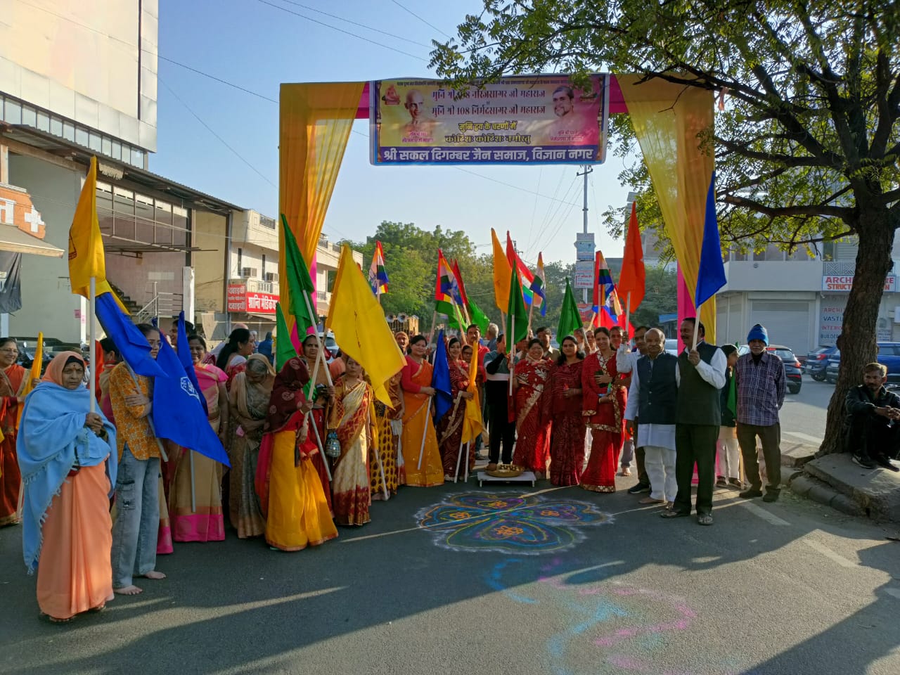 दिगंबर जैन मंदिर विज्ञान नगर में मुनि नीरज सागर जी एवं मुनि निर्मद सागर जी महाराज का मंगल प्रवेश हुआ । मंदिर समिति के अध्यक्ष राजमल पटौदी ने बताया कि संत शिरोमणि आचार्य विद्यासागर जी महाराज के शिष्य मुनि नीरज सागर जी एवं मुनि निर्मद सागर जी महाराज का महावीर नगर द्वितीय जैन मंदिर से बिहार होकर कॉमर्स कॉलेज चौराहे से भव्य शोभा यात्रा के साथ विज्ञान नगर जैन मंदिर में भव्य मंगल प्रवेश हुआ ।
