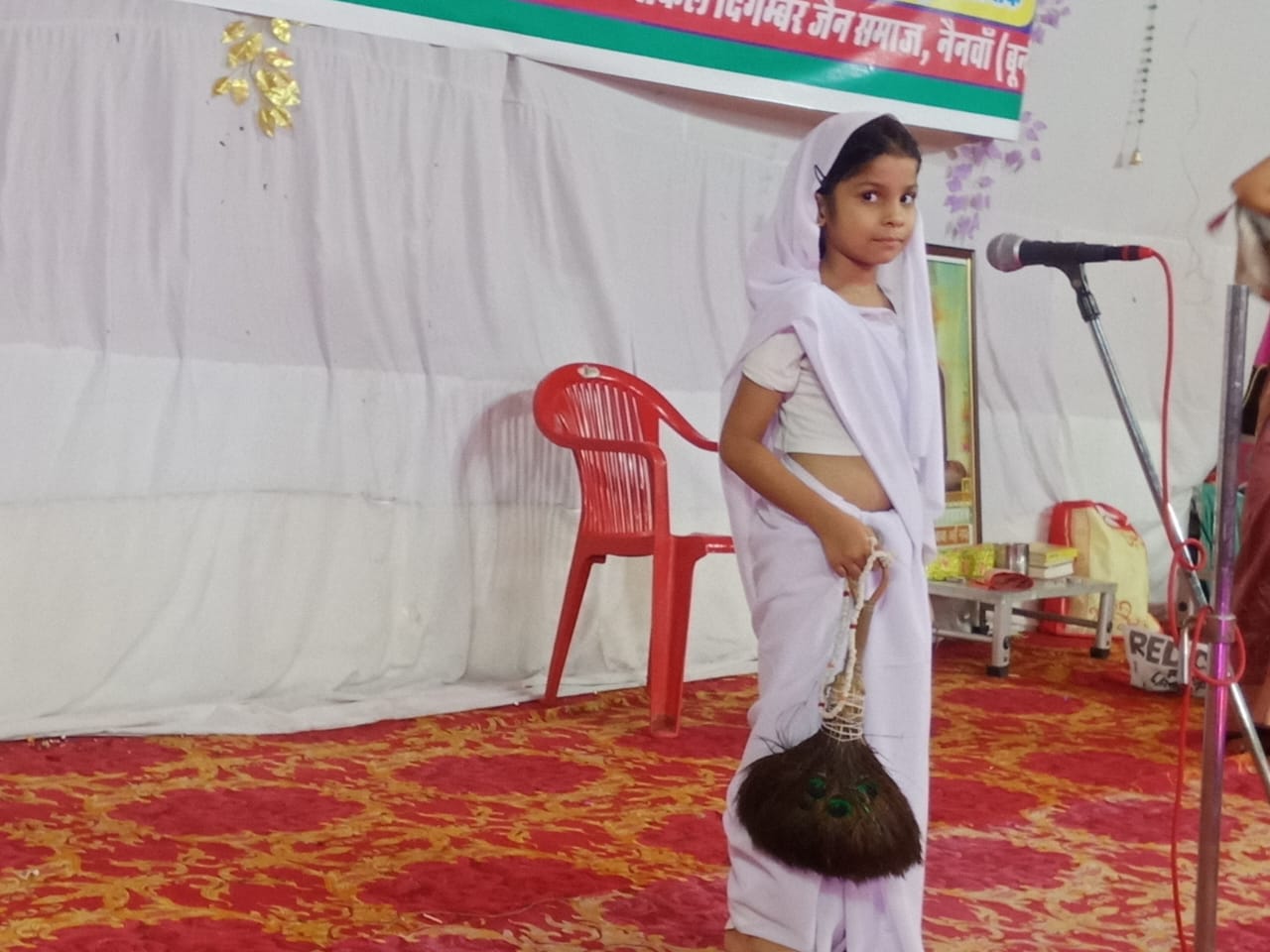 स्वस्ति भूषण माताजी के नाम पर छोटी बालिका ने हाथ में पिछी लेकर सफेद वस्त्र धारण करके माताजी रूप के अंदर शहर में भ्रमण किया मंच पर विधि विधान करके माताजी का आहार कराया